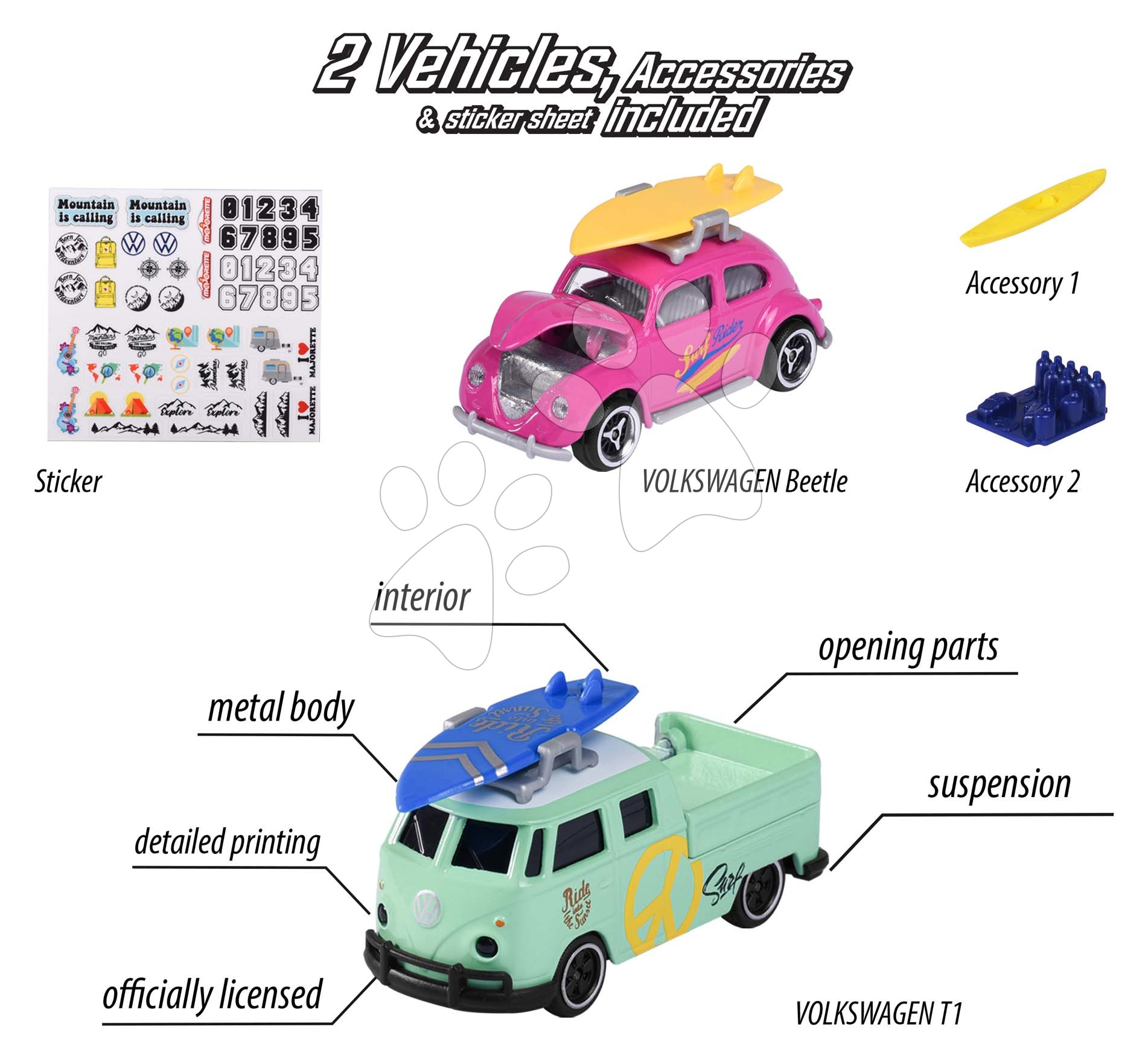 Autíčka VW The Originals Majorette kovová s nálepkami délka 7,5 cm sada 2 druhů 3 varianty