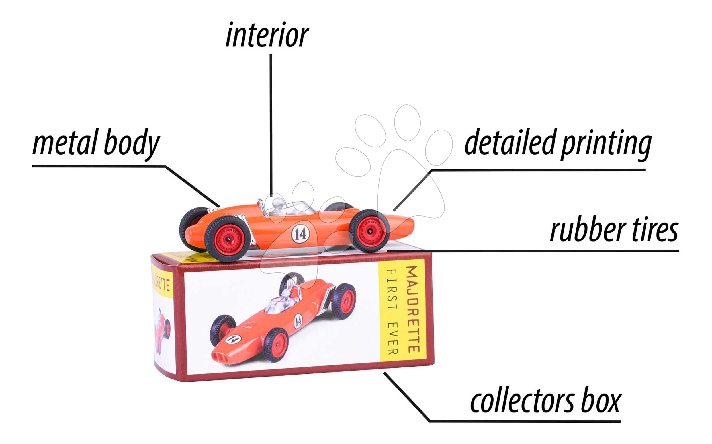 Autíčko Anniversary Edition First Ever Majorette kovové s gumovými kolečky a sběratelským boxem délka 7,5 cm 6 různých druhů