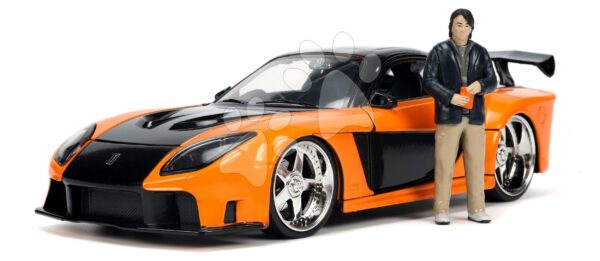 stylová autíčka známá z filmů Fast & Furious přináší výrobce Jada. kovové autíčko Mazda RX-7 1995 s figurkou Han potěší chlapce již od 8 let.