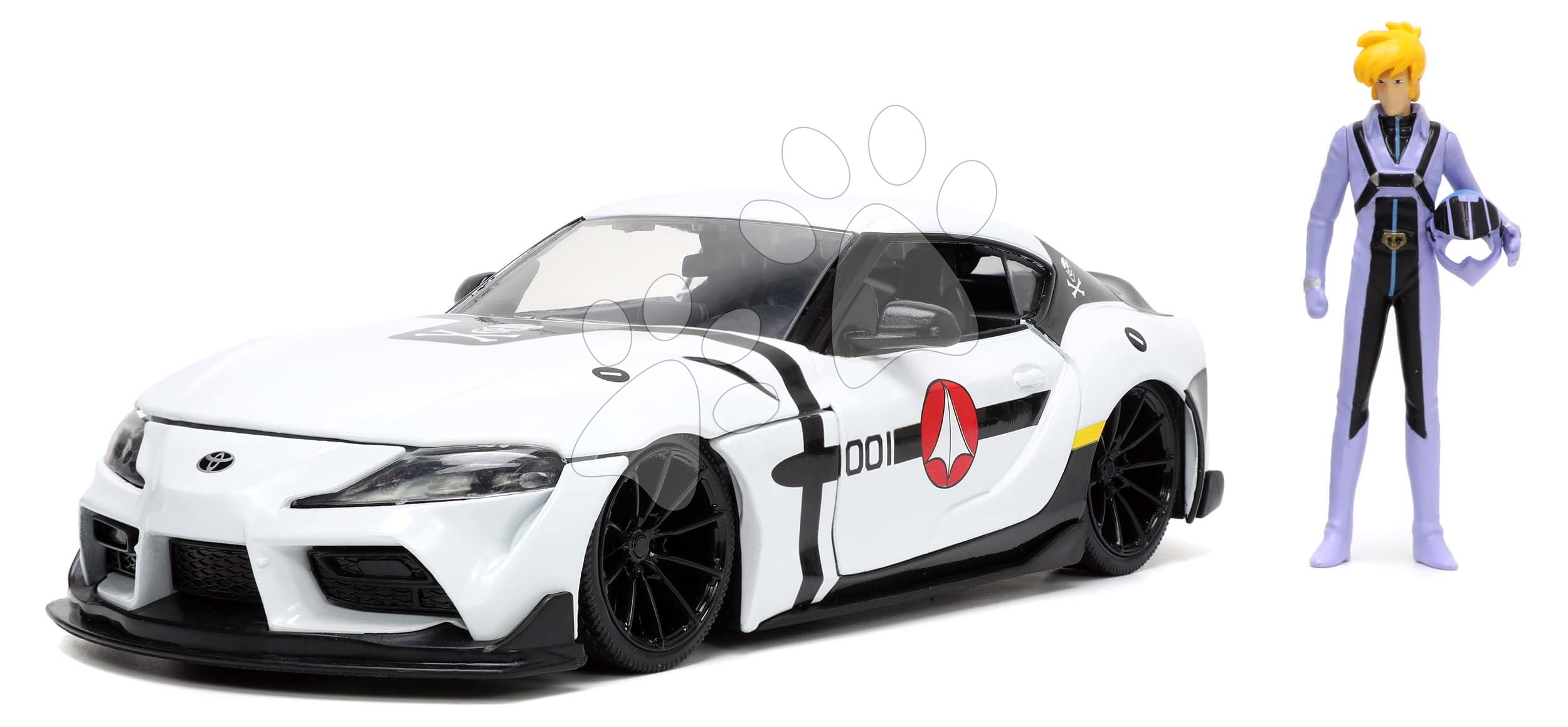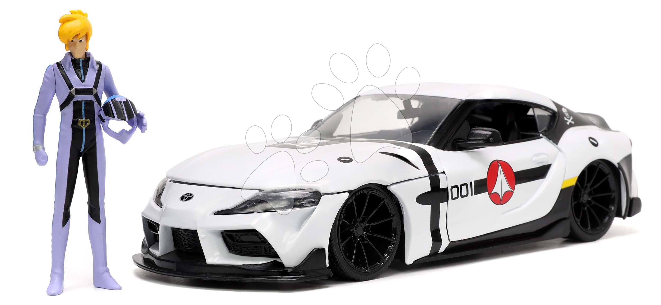 Autíčko Robotech ´20 Toyota Supra Jada kovové s otevíracími částmi a figurkou Roy Fokker délka 20 cm 1:24