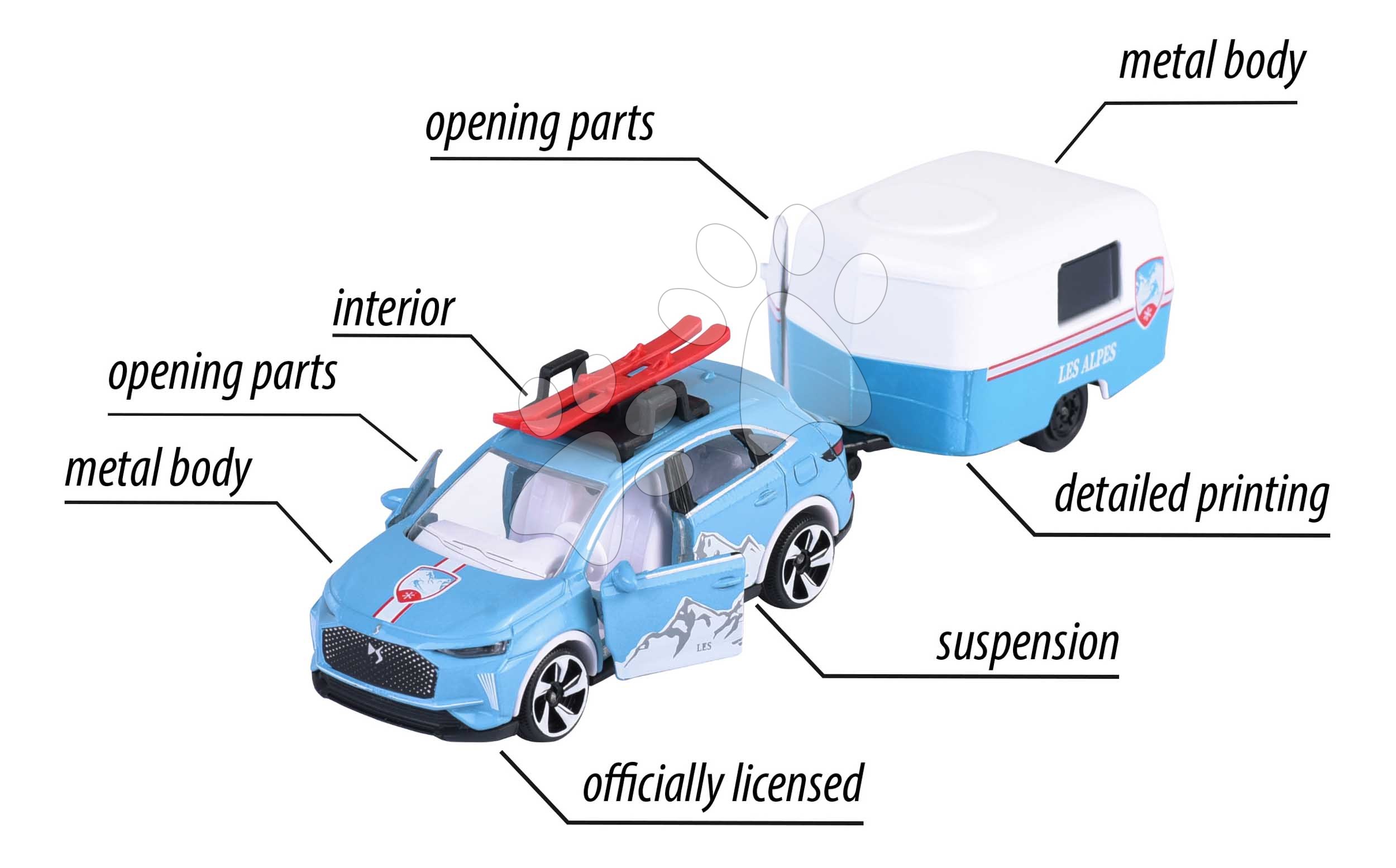 Prvotřídní autíčka pro malé a velké sběratele od francouzské značky Majorette. kovové autíčko s přívěsem French Touch s odpružením o délce 13 cm nabízíme v různých modelech.