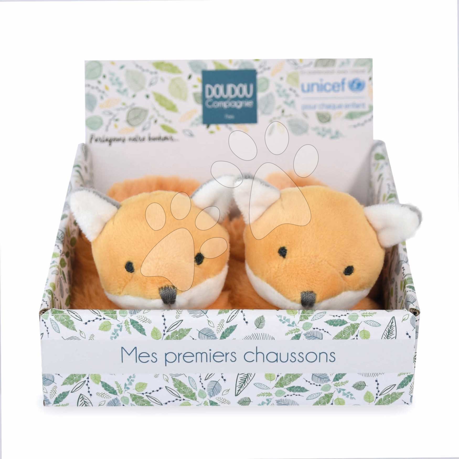 Bačkůrky pro miminko Fox Booties Unicef Collection Doudou et Compagnie v dárkovém balení oranžové 0–6 měsíců