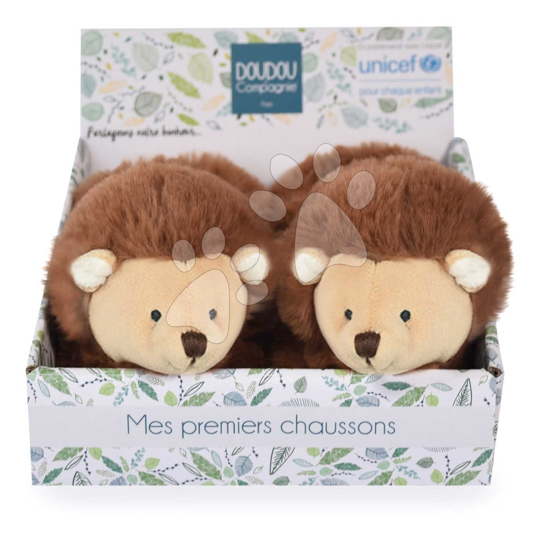 Bačkůrky pro miminko Hedgehog Booties Unicef Collection Doudou et Compagnie v dárkovém balení hnědé 0–6 měsíců