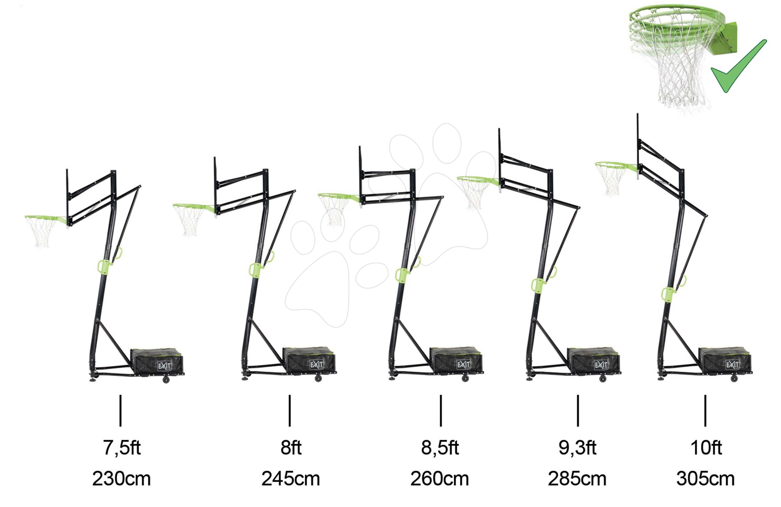 Basketbalová konstrukce s deskou a flexibilním košem Galaxy portable basketball Exit Toys ocelová přenosná nastavitelná výška