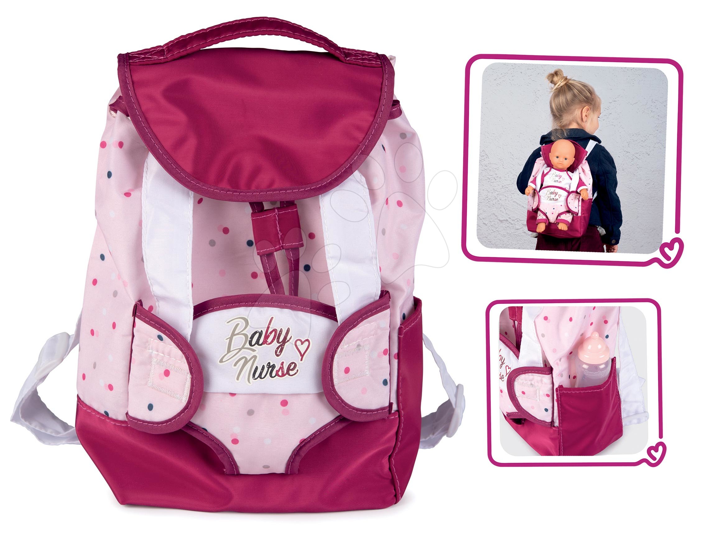Batoh s klokankou pro 42 cm panenku Violette Baby Nurse Smoby a s kapsou pro láhev nastavitelná ramínka
