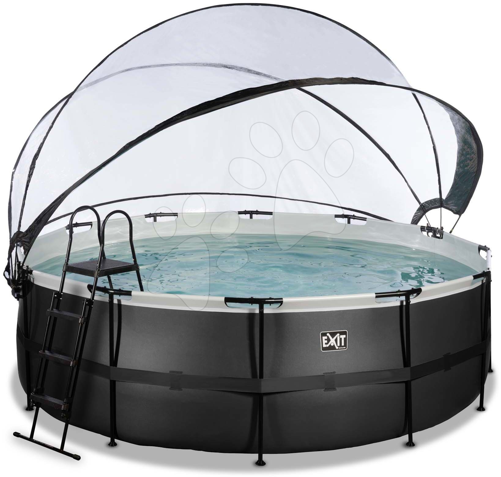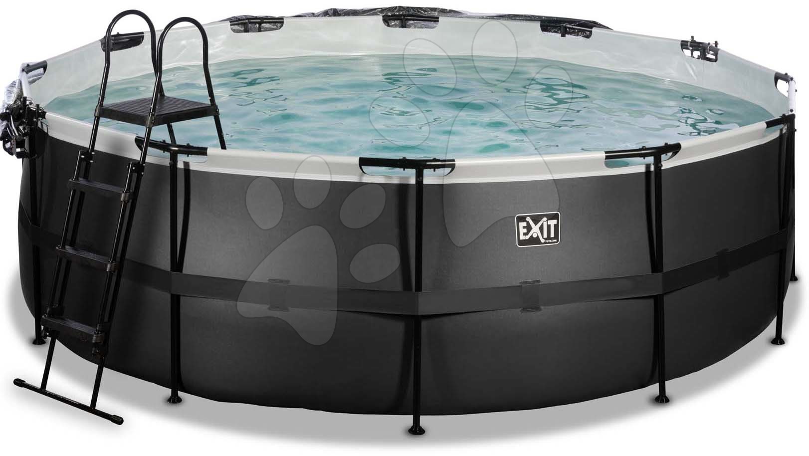 Bazén s krytem a pískovou filtrací Black Leather pool Exit Toys kruhový ocelová konstrukce 427*122 cm černý od 6 let