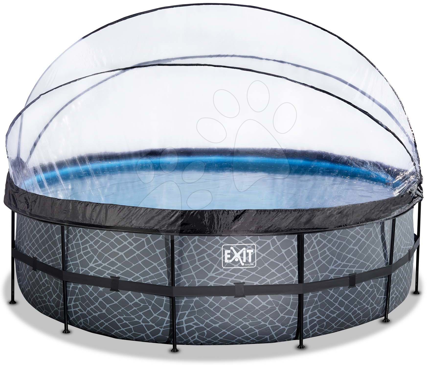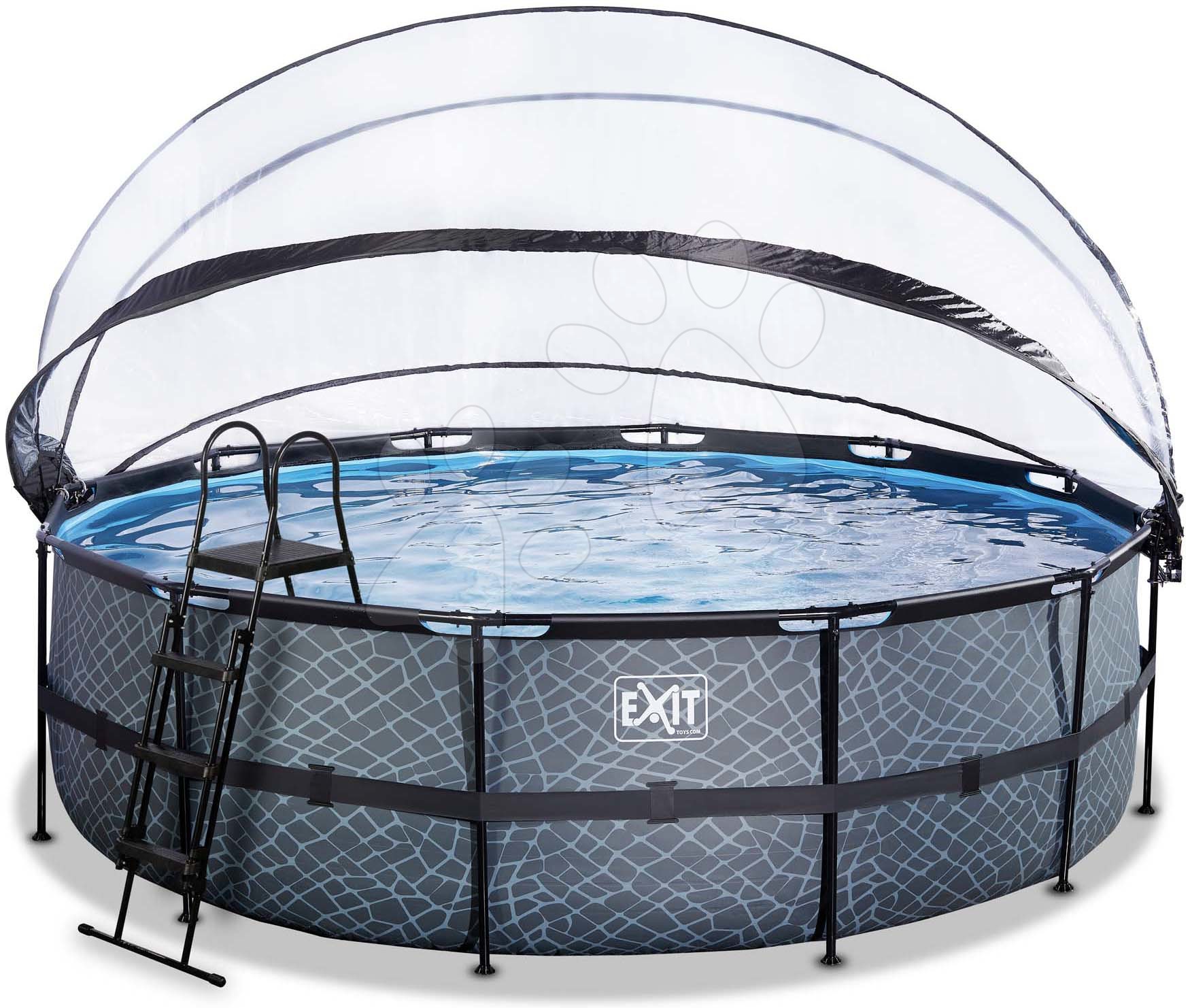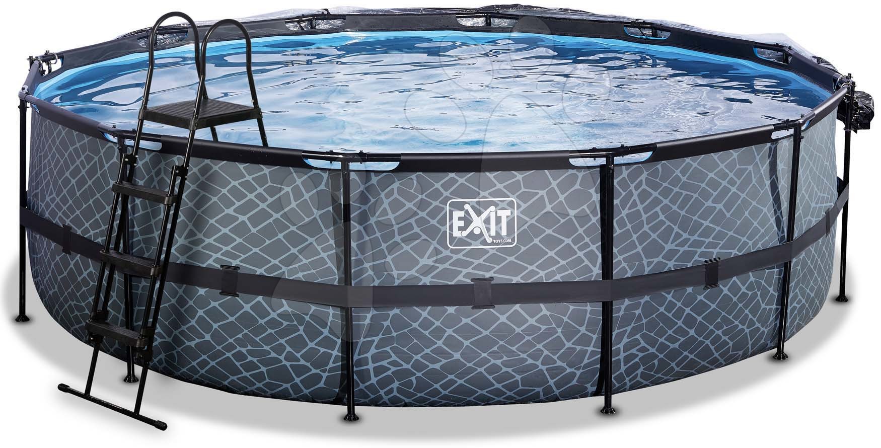 Bazén s krytem a pískovou filtrací Stone pool Exit Toys kruhový ocelová konstrukce 488*122 cm šedý od 6 let