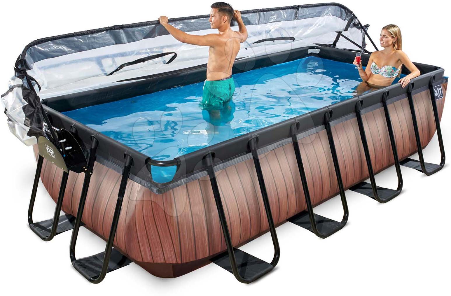 Bazén s krytem a pískovou filtrací Wood pool Exit Toys ocelová konstrukce 400*200*100 cm hnědý od 6 let