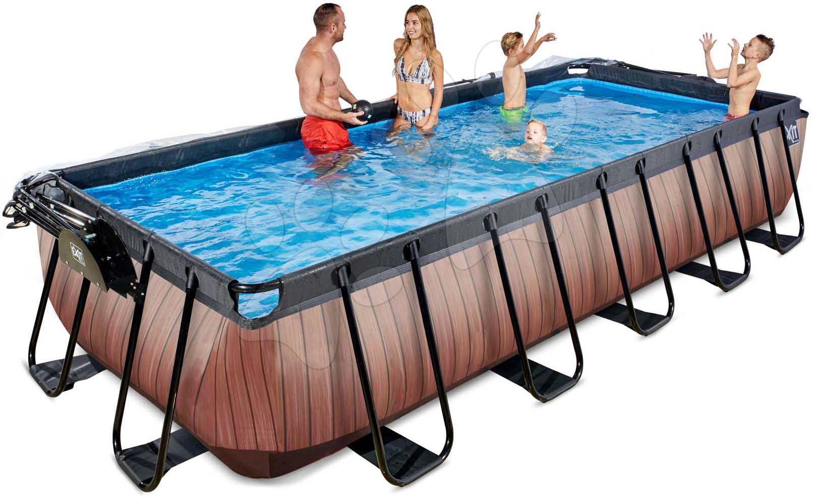 Bazén s krytem a pískovou filtrací Wood pool Exit Toys ocelová konstrukce 540*250*100 cm hnědý od 6 let