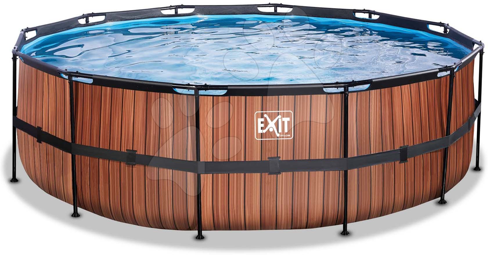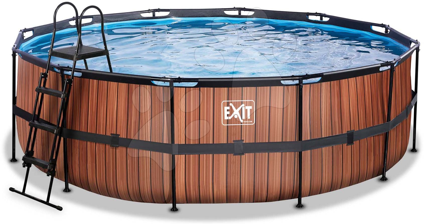 Bazén s pískovou filtrací Wood pool Exit Toys kruhový ocelová konstrukce 450*122 cm hnědý od 6 let