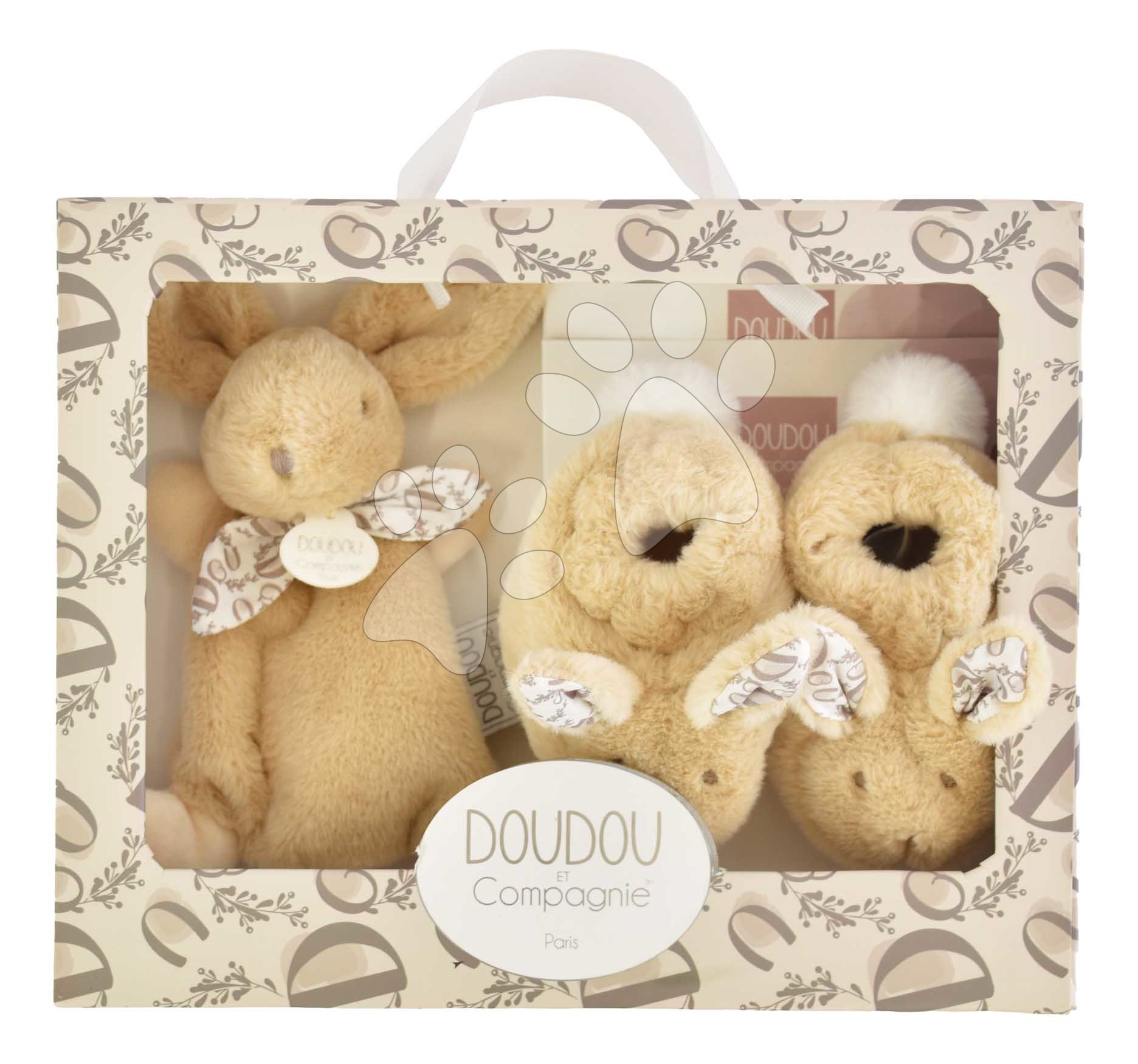 Dárková sada pro miminko Slipper Gift Set Beige Lapin Doudou et Compagnie bačkůrky a zajíček na mazlení béžová 15 cm v dárkovém balení od 0 měsíců
