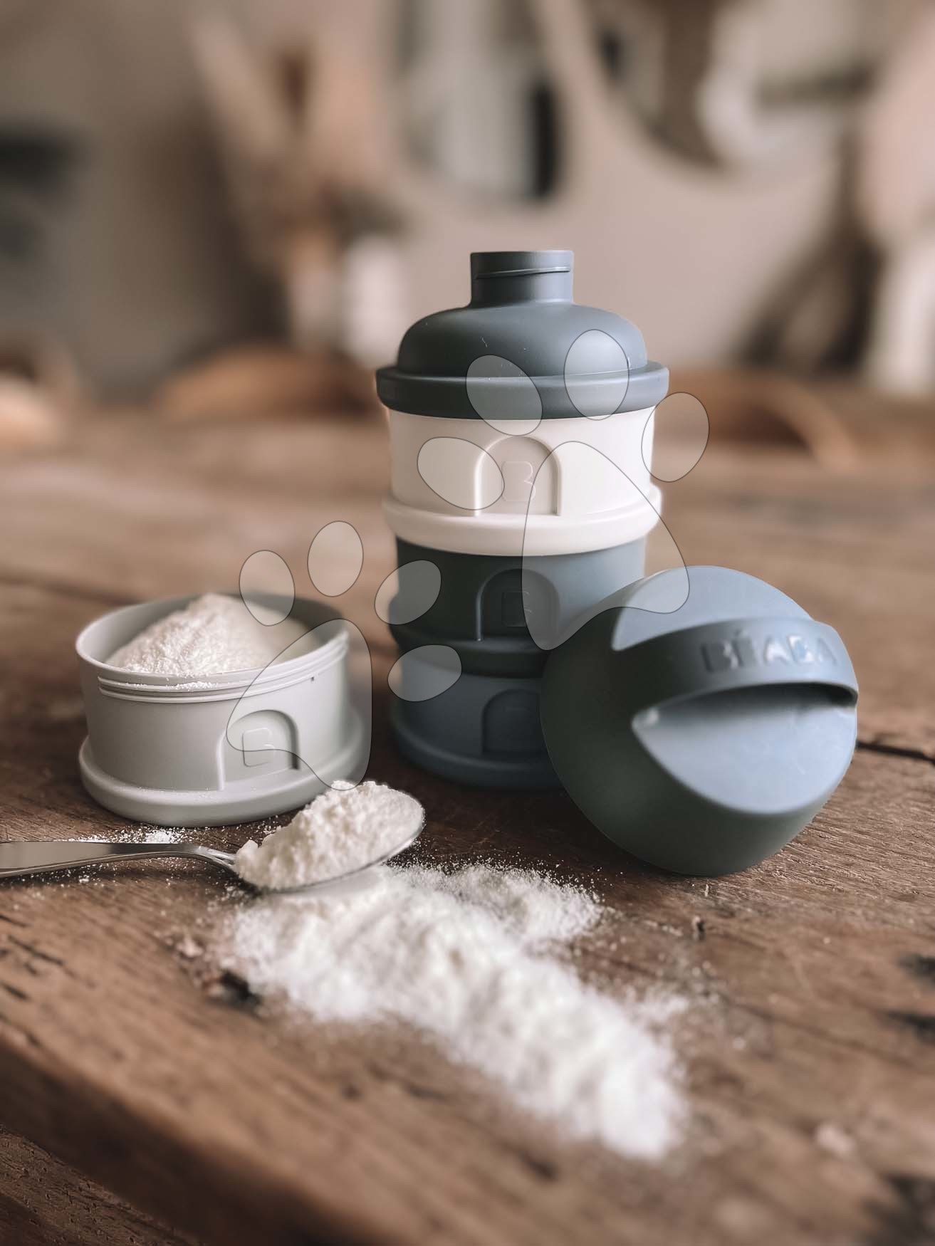 Dávkovač sušeného mléka Formula Milk Container Beaba 4dílný Mineral Grey Blue šedo-modrý od 0 měsíců