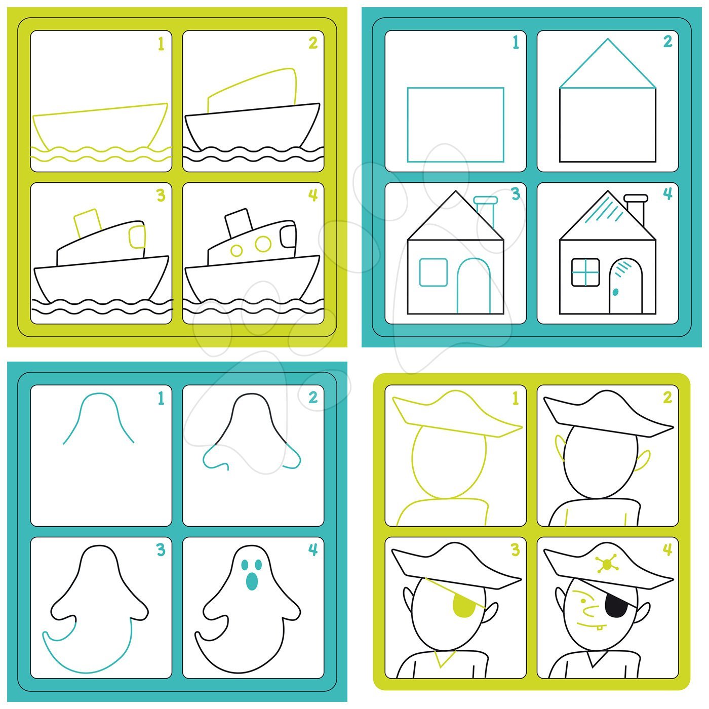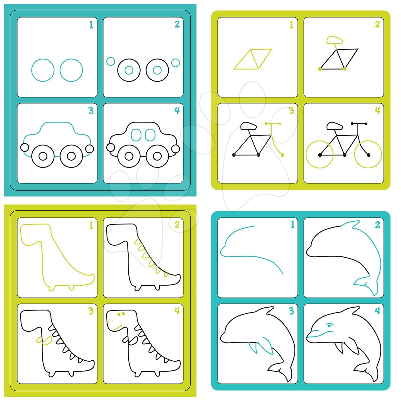 Dohány naučná hra tabule Kresli a smaž tyrkysová – Učíme se kreslit krok za krokem hrady a auta 506-4