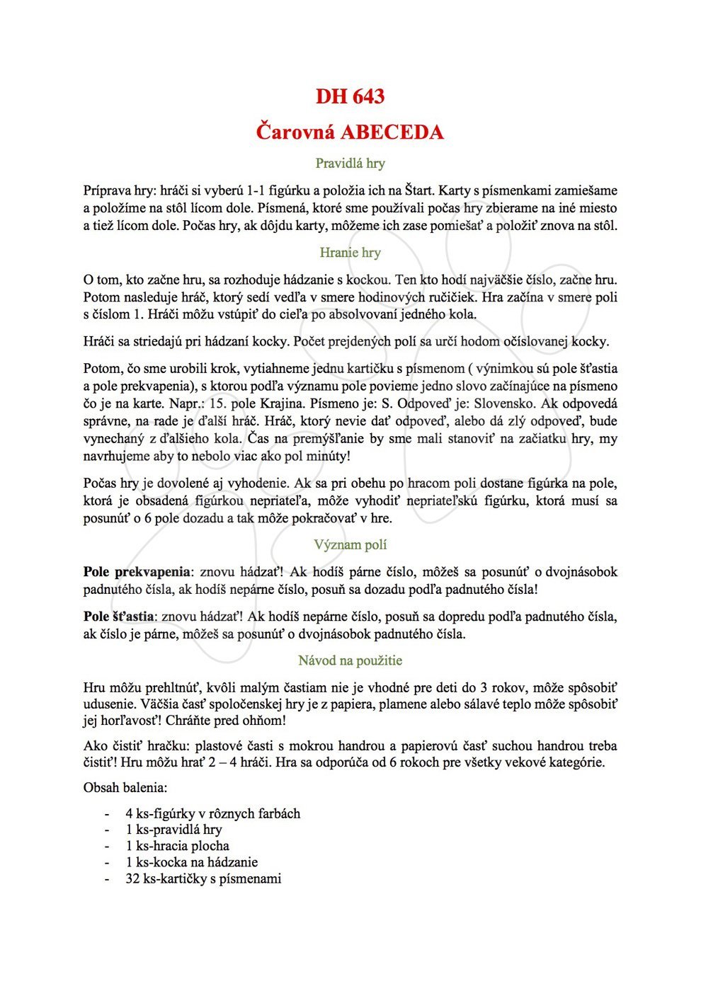 Hledáte pro své děti společenskou hru, která jim pomůže naučit se abecedu? Společenská hra od výrobce Dohány ABC – poznávání abecedy je výborným pomocníkem pro Vaše děti při prvním poznávání písmen.