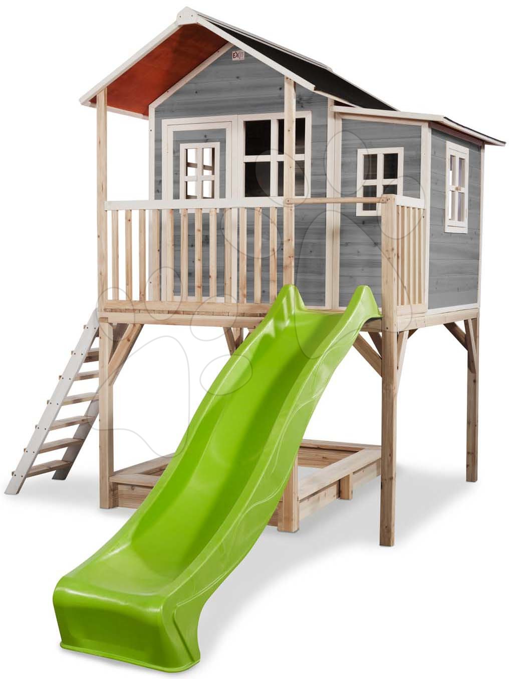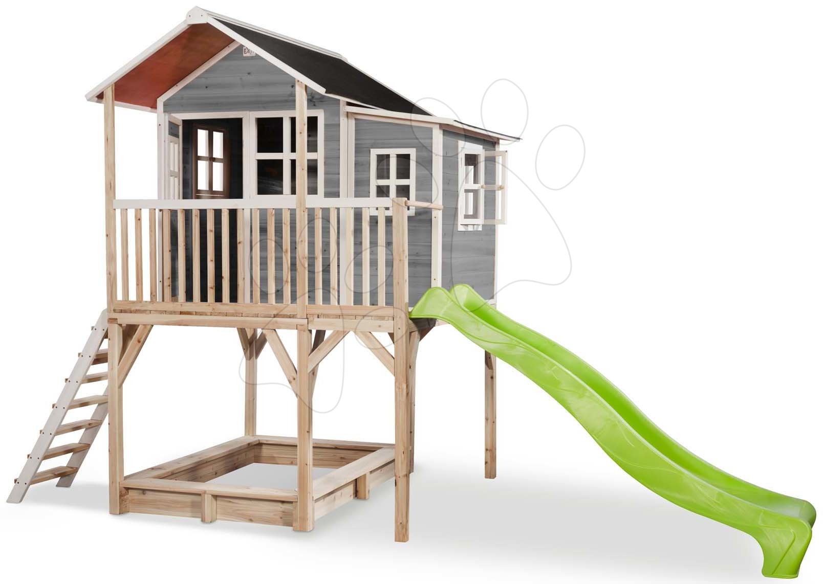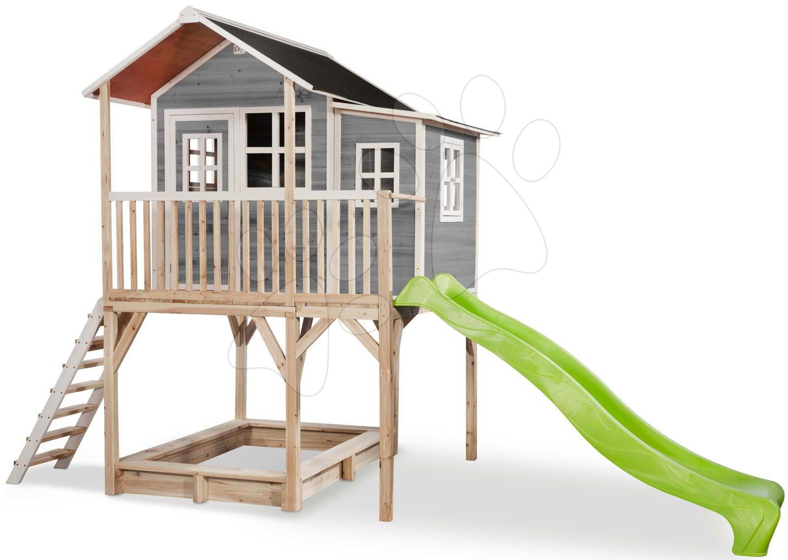 Domeček cedrový na pilířích Loft 750 Grey Exit Toys velký s voděodolnou střechou pískovištěm a 2,28 m skluzavkou šedý