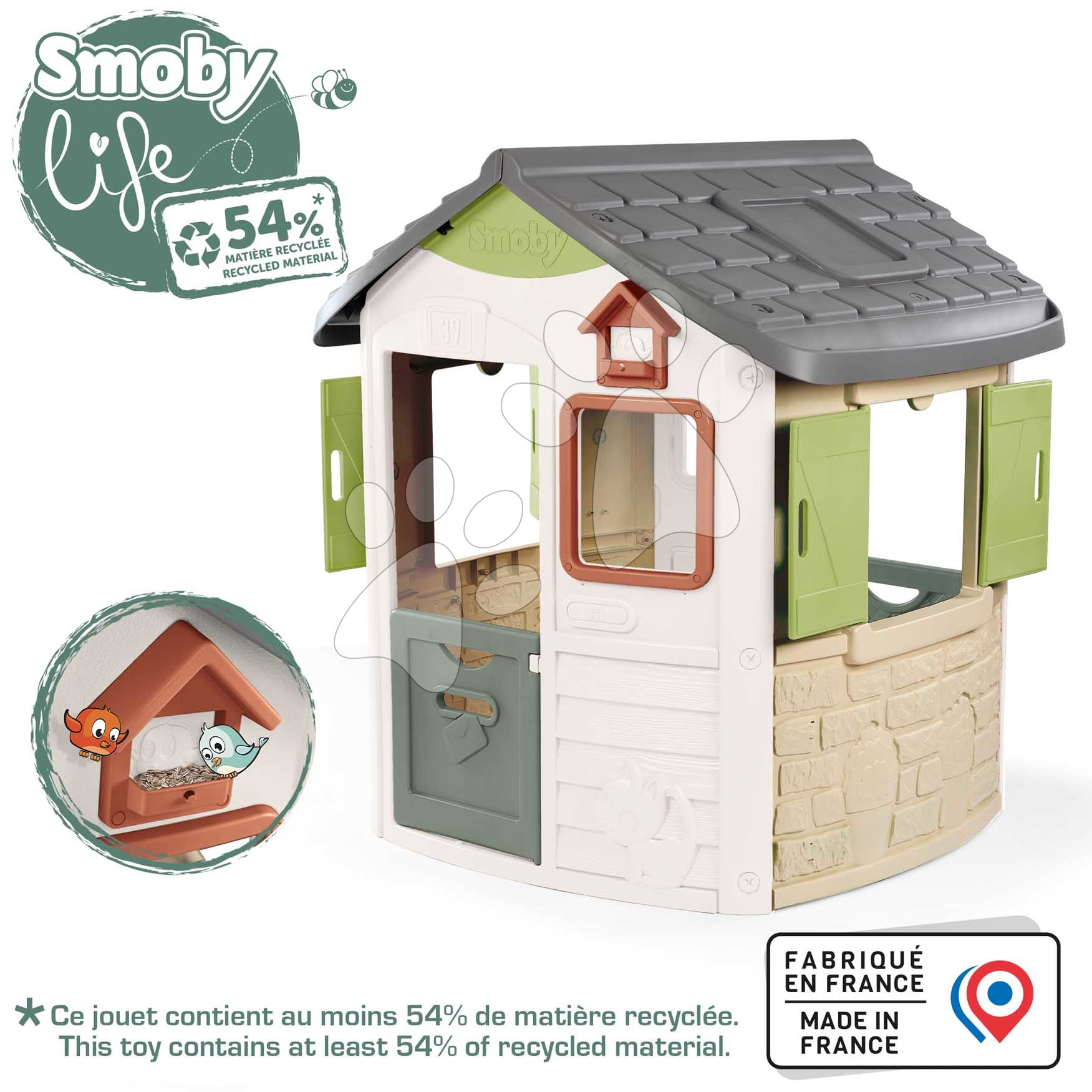 Domeček Life Jura Lodge Playhouse Life Smoby rozšiřitelný 2 dveře a 2 okna s okenicemi a krmítkem pro ptáčky s UV filtrem od 24 měsíců – model 2025
