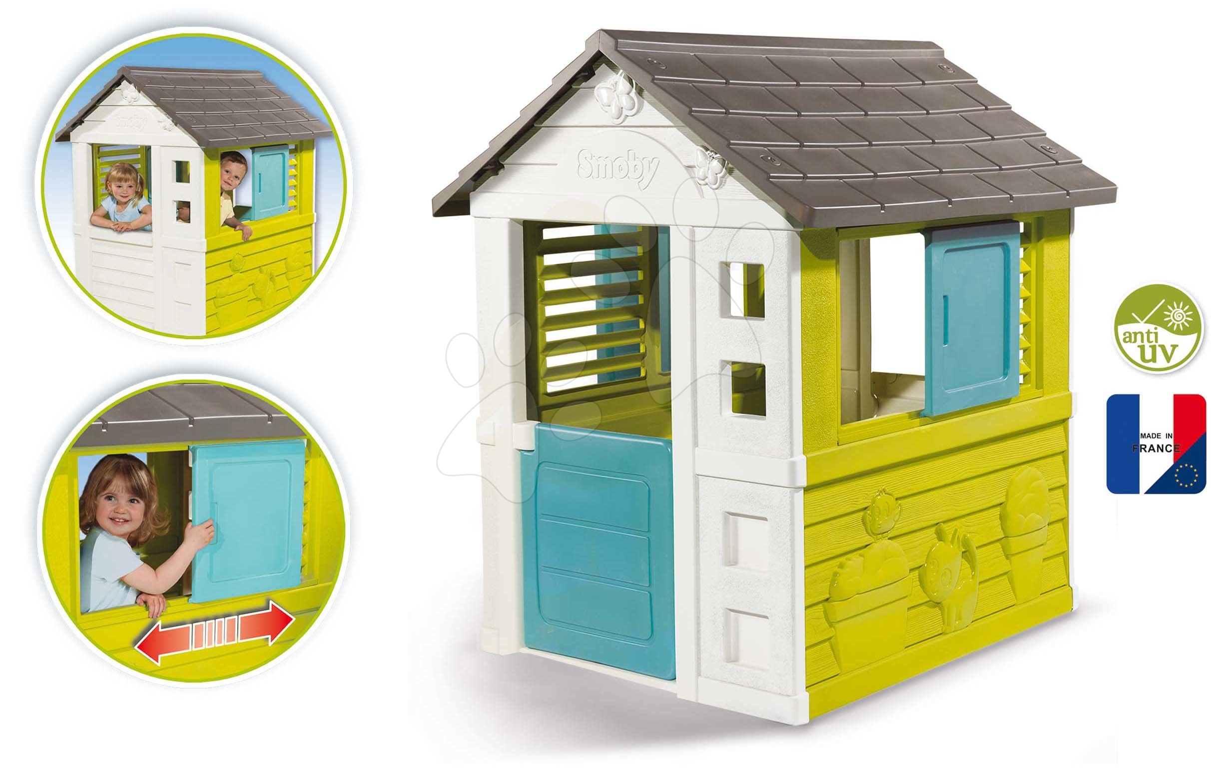 Moderní domečky pro děti od Smoby. zahradní domek Pretty se 2 okny se žaluziemi a posuvnými okenicemi zabaví děti od 2 let.