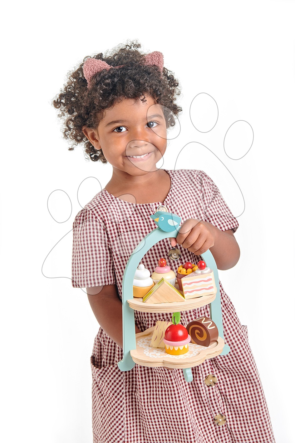 Dřevěná cukrárna Birdie Afternoon Tea stand Tender Leaf Toys se zákusky a sendviči
