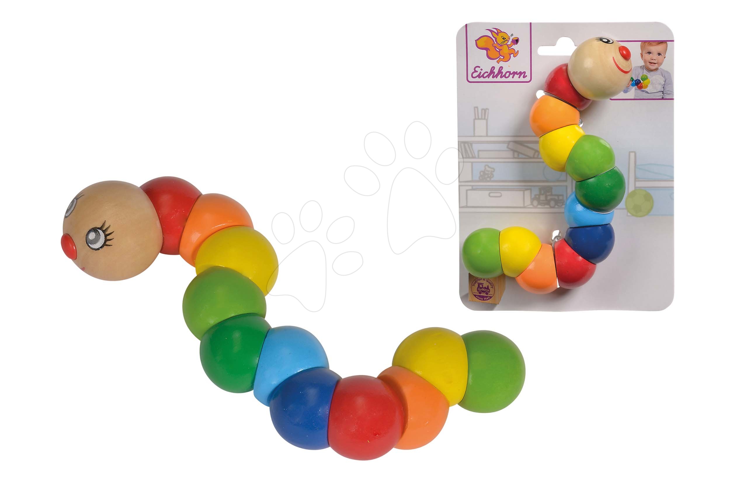 Originální hračky Eichhorn za skvělé ceny. dřevěná housenka Grasping Toy v pestrých barvách potěší každé dítě od 1 roku.
