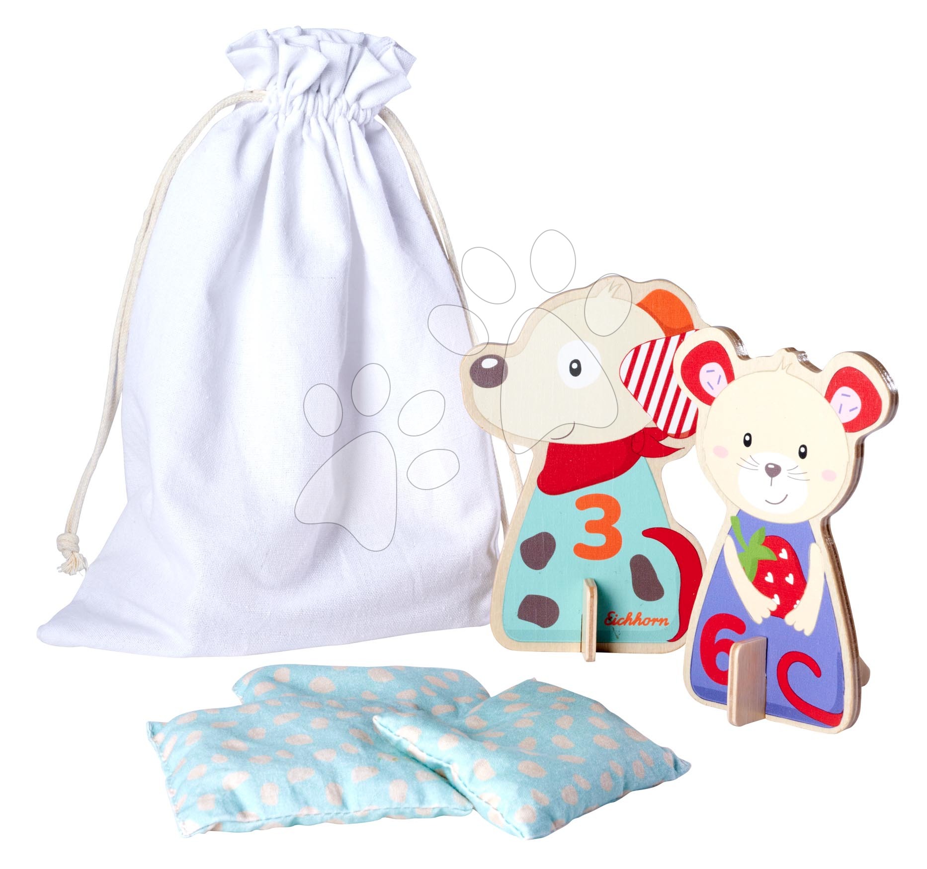 Praktické hry na házení pro děti od 3 let. dřevěná hra Outdoor Throwing Bags od německé značky Eichhorn obsahuje 6 terčů a 3 sáčky na házení.