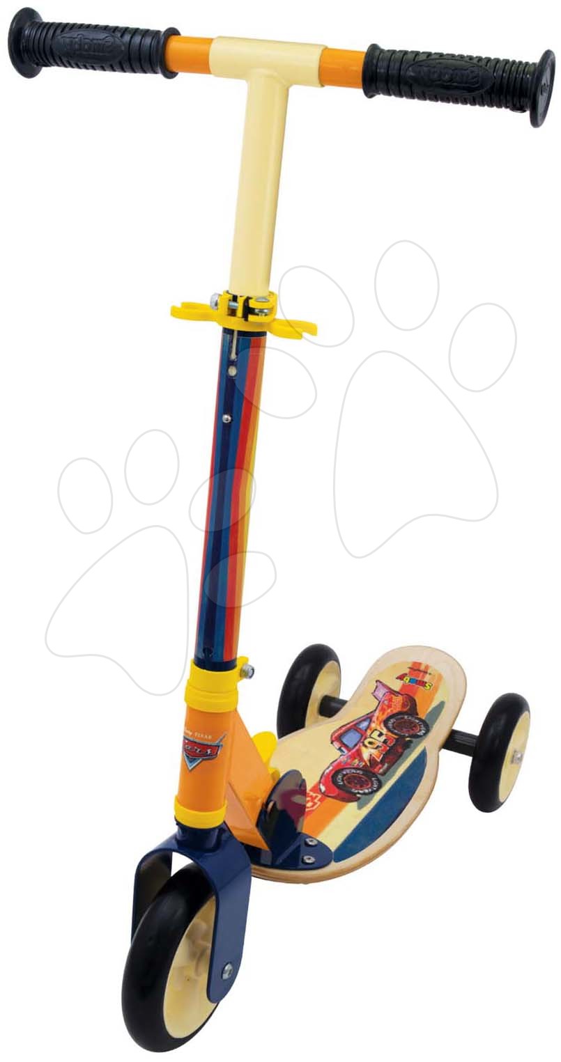 Dřevěná koloběžka tříkolová Cars 3 Wheels Foldable Scooter Smoby skládací výškově nastavitelná a protiskluzová tichá