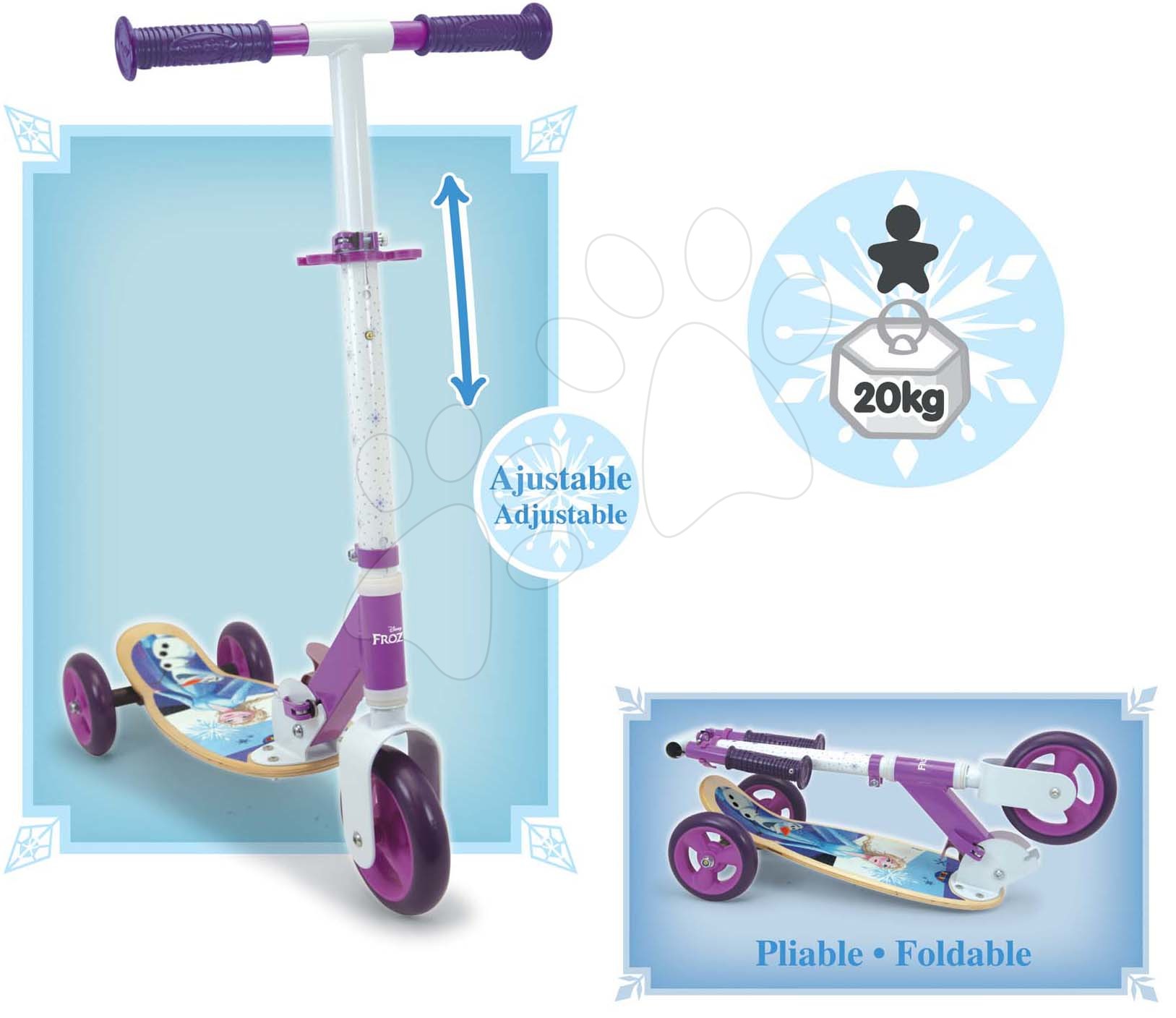 Dřevěná koloběžka tříkolová Frozen Wheels Foldable Scooter Smoby skládací výškově nastavitelná a protiskluzová tichá