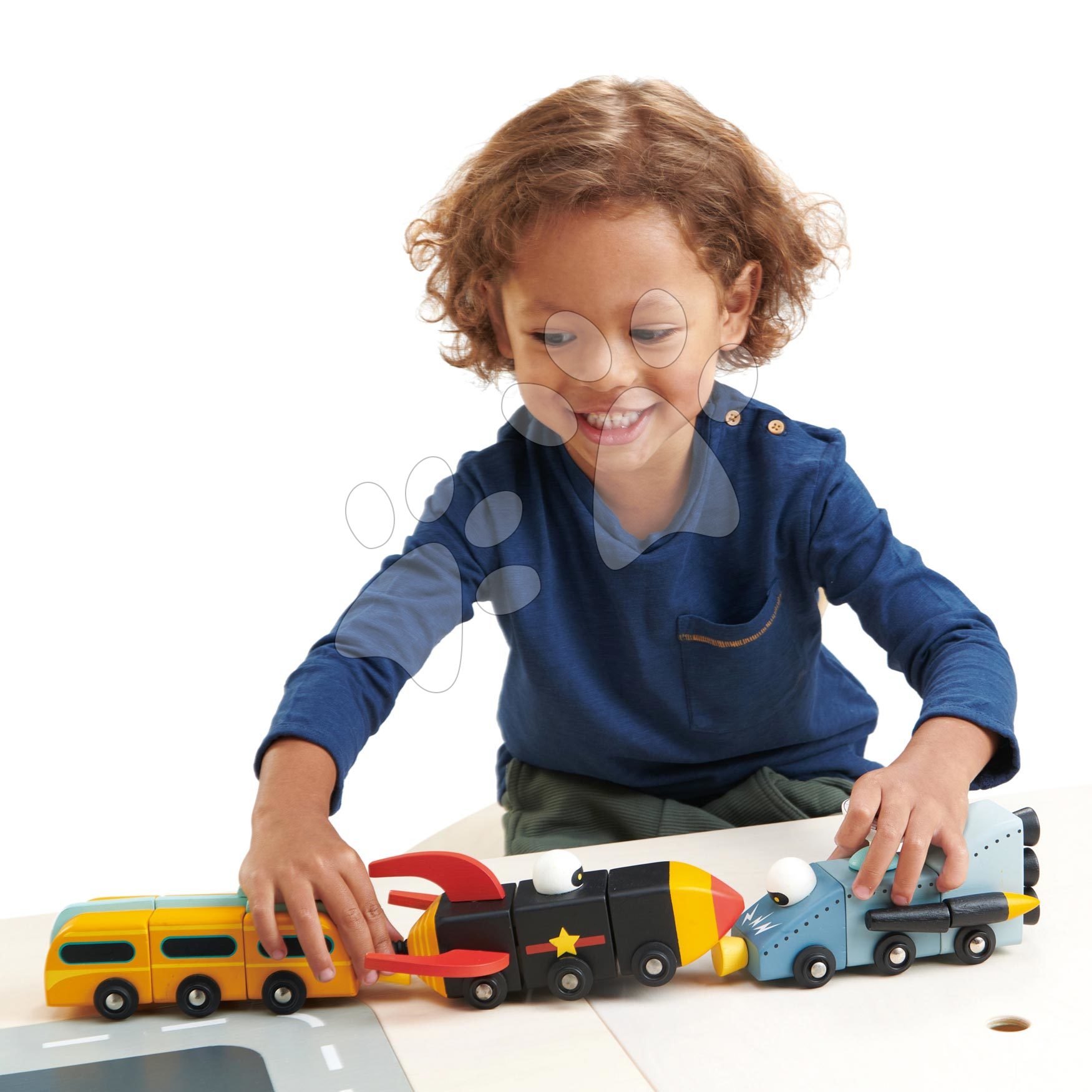 Dřevěná kosmická auta Space Race Tender Leaf Toys třídílná skládací kombinovatelná
