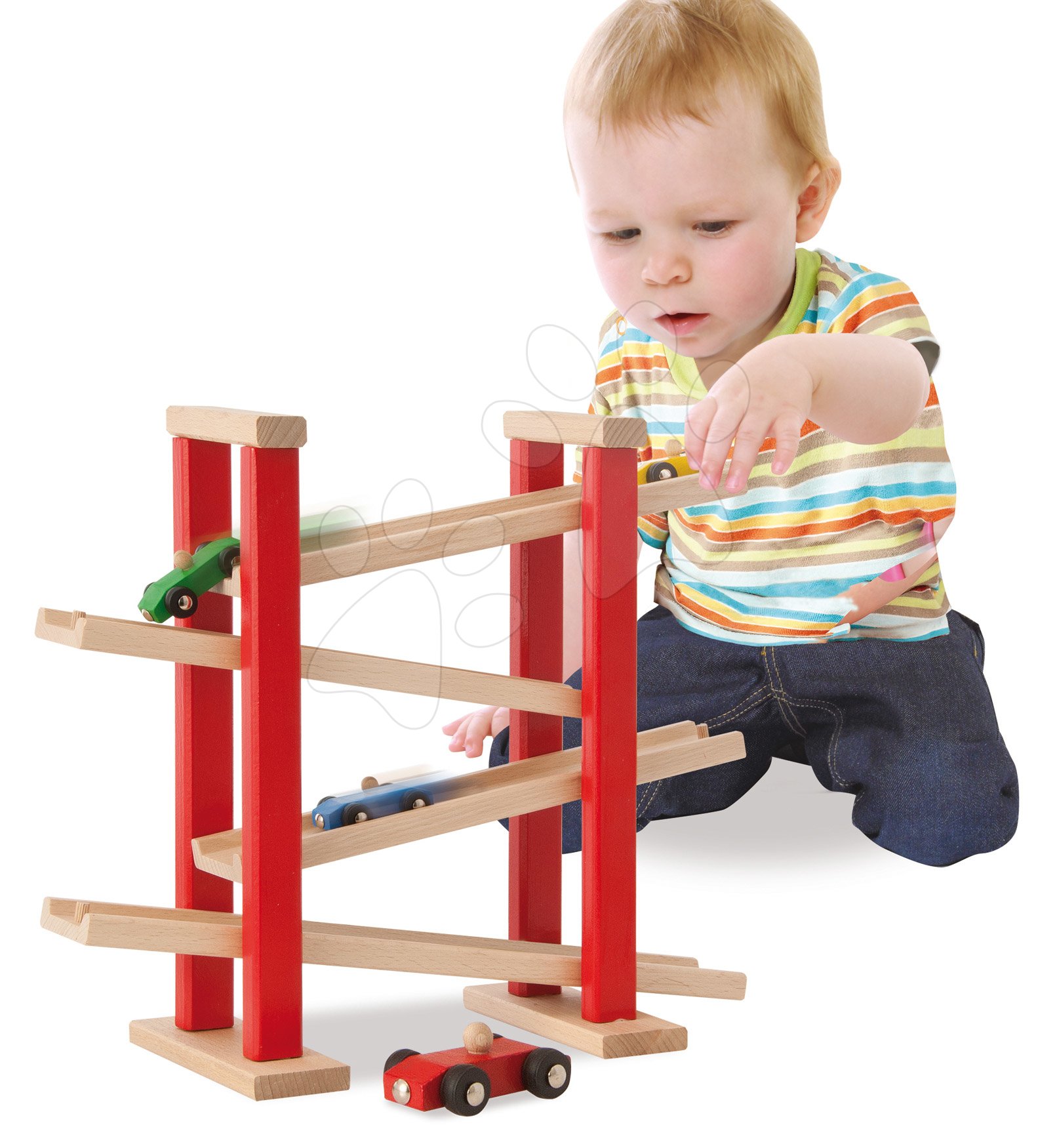 Dřevěné spouštěcí autodráhy Eichhorn za skvělé ceny. dřevěná kuličková autodráha Race Track se 4 autíčky potěší chlapce i dívky od 12 měsíců.