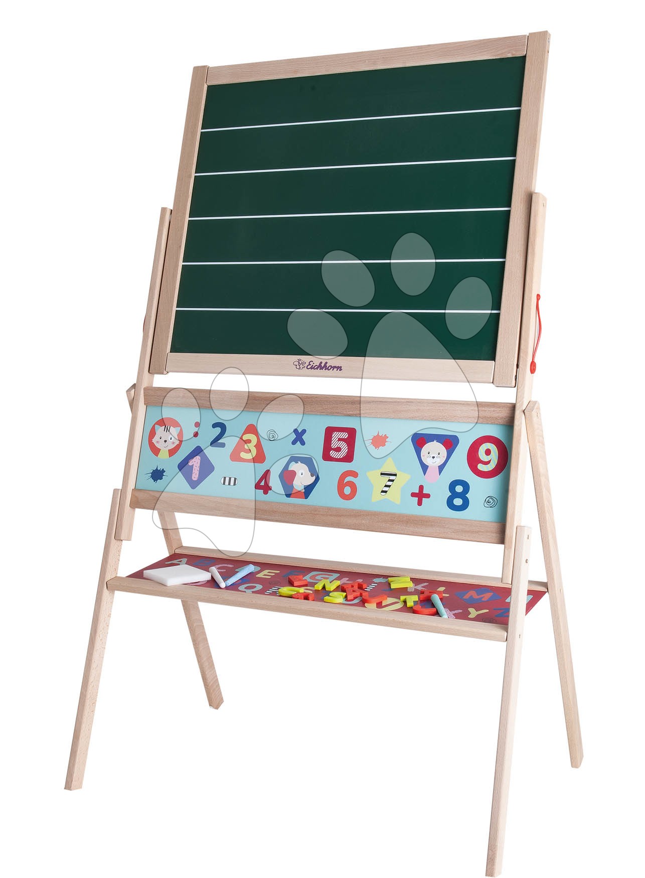 Objevujte stylové dřevěné tabule pro děti od německé značky Eichhorn. dřevěná magnetická tabule se 48 magnetkami, křídami a houbou zaujme chlapce i dívky.
