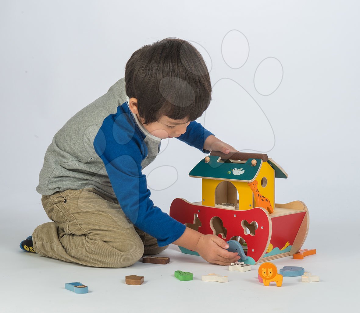 Dřevěná Noemova archa Noah’s Shape Sorter Ark Tender Leaf Toys 23dílná s postavičkami, rozebíratelná od 18 měs