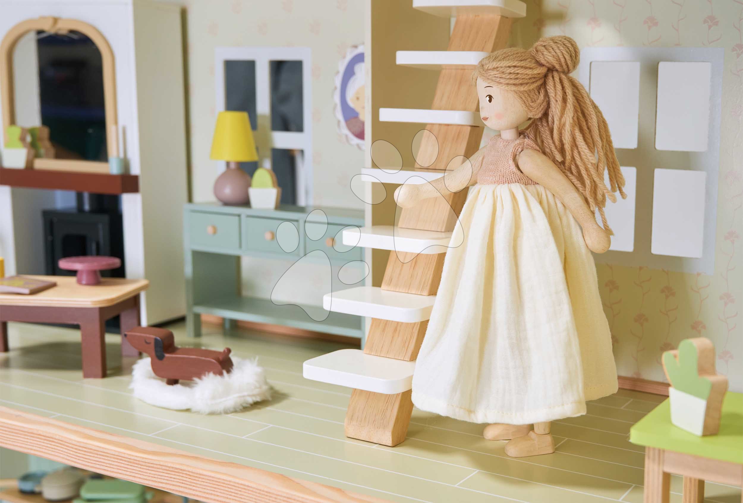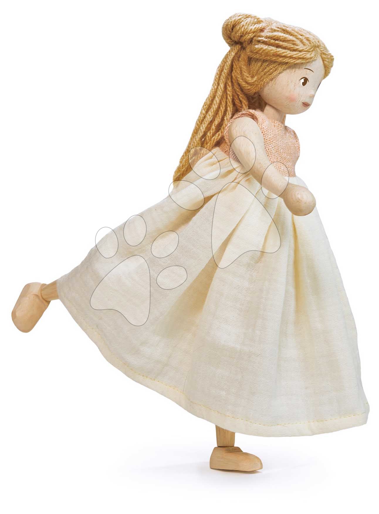 Dřevěná panenka v šatech Ferne Wooden Doll Tender Leaf Toys s pohyblivýma rukama a nohama 25 cm výška