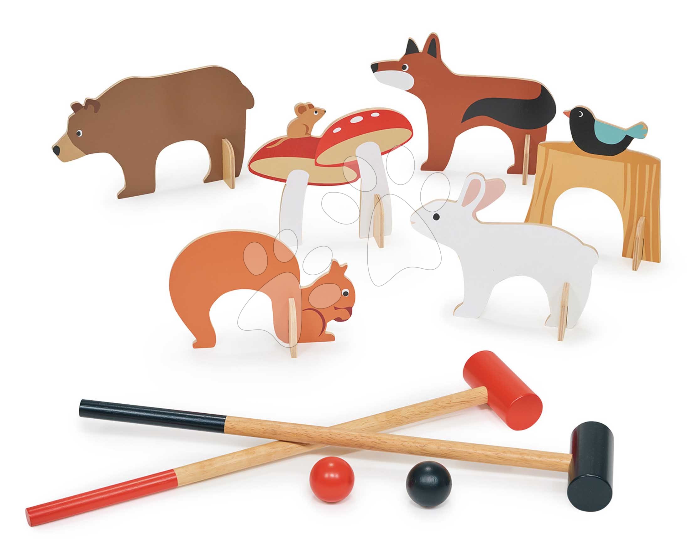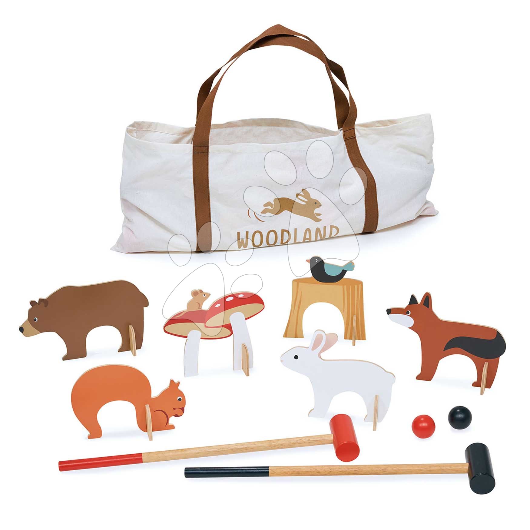 Dřevěná sada na kroket Woodland Indoor Croquet Set Tender Leaf Toys 2 hole s míčky a 6 branek ve tvaru zvířátek v plátěné tašce