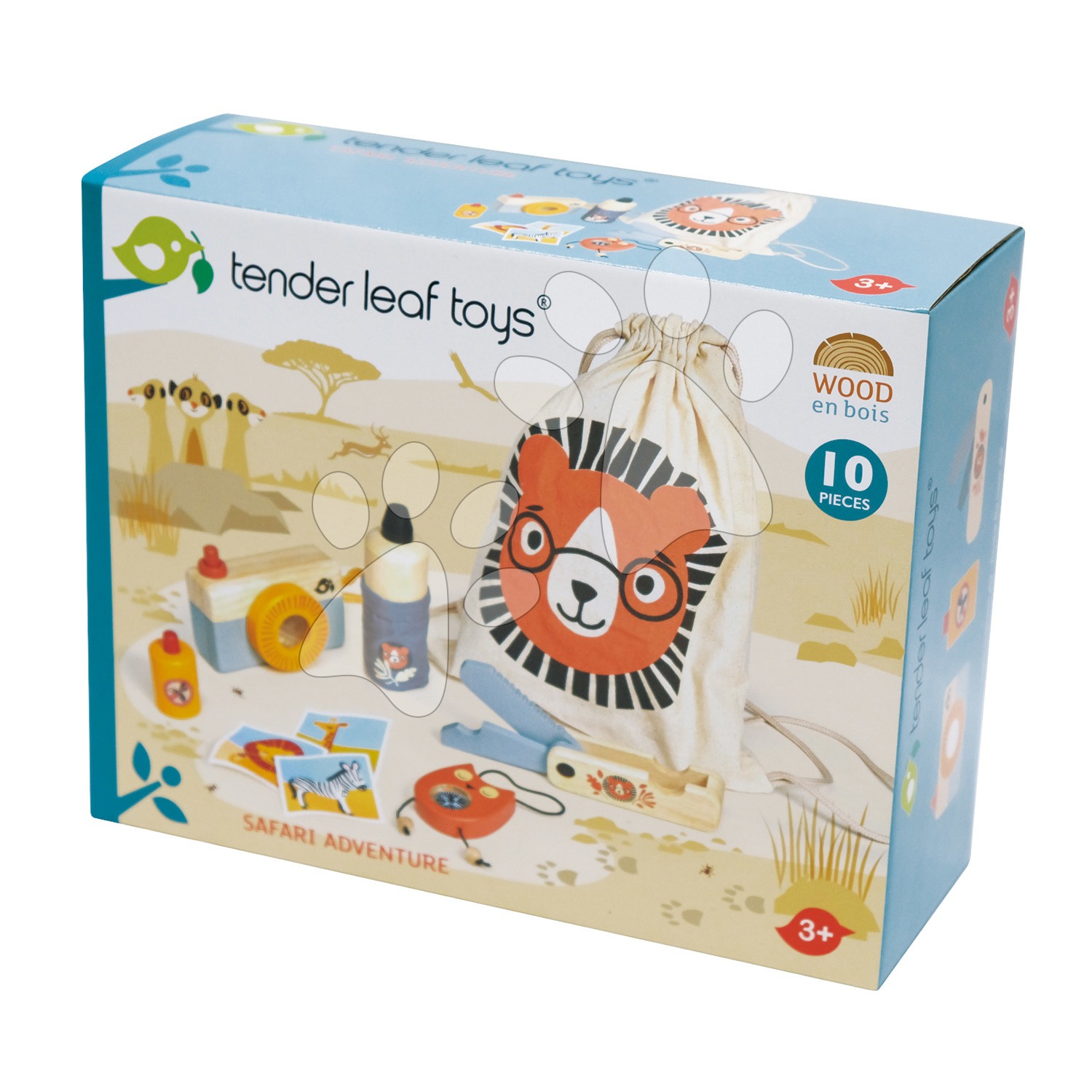 Dřevěná sada na výlet Safari Adventure Tender Leaf Toys s fotoaparátem kompasem a doplňky v tašce