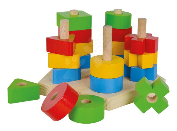 Dřevěná skládačka věž Stacking Toy Eichhorn s 5 různými barevnými tvary 21 dílů od 12 měsíců