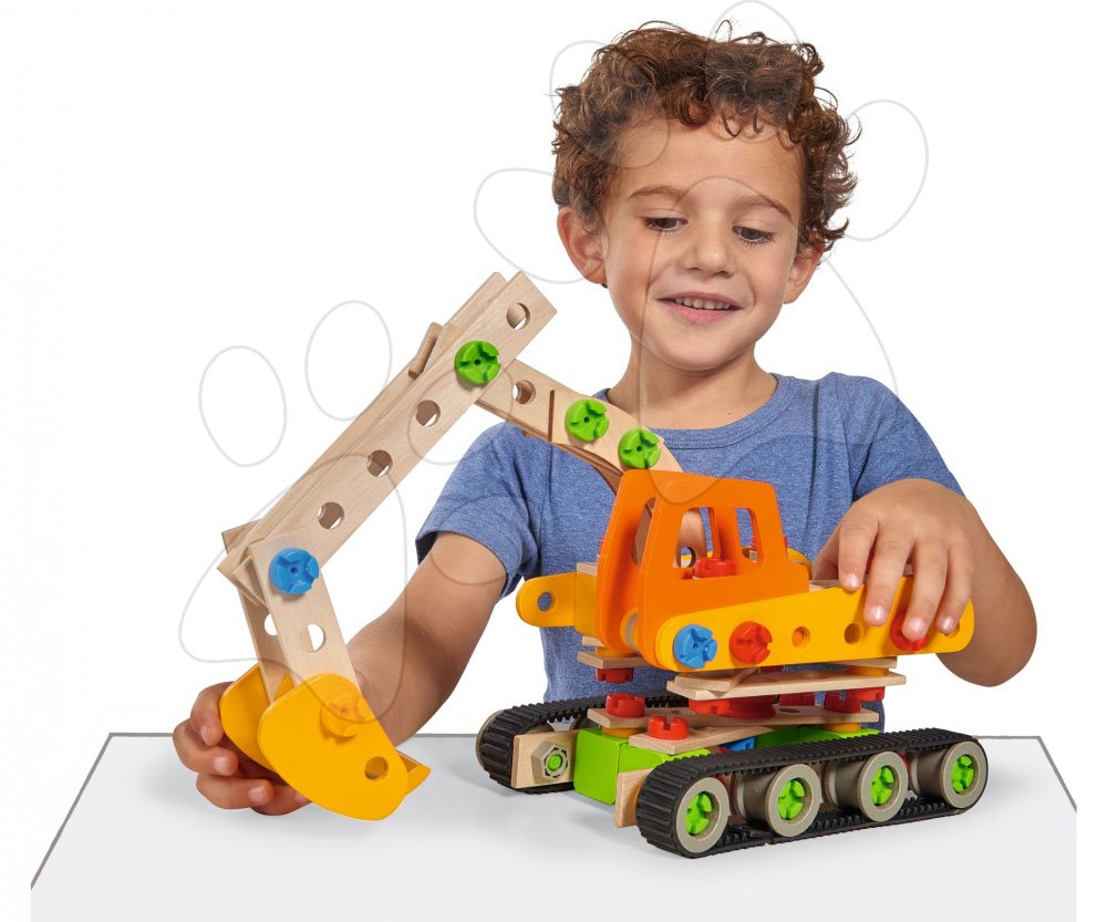 Dřevěná stavebnice pásový jeřáb Constructor Crawler Excavator Eichhorn 4 modely (jeřáb, pásový jeřáb, vagón, sněžná čtyřkolka) 170 dílů od 6 let