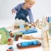 Moderní vláčkodráhy z prvotřídního dřeva od Tender Leaf Toys. dřevěná 58dílná vláčkodráha vysokohorská nabídne dětem od 3 let různé výhledové scenérie.