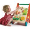Dřevěné chodítko zahrada Baby Activity Walker Tender Leaf Toys s různými funkcemi a kostkami od 18 měsíců