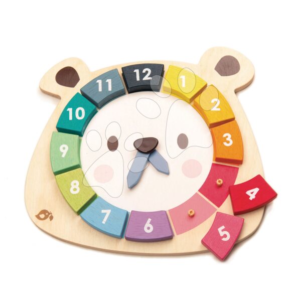 Dřevěné hodiny s medvědem Bear Colour Clock Tender Leaf Toys závěsné s 12 barevnými čísly