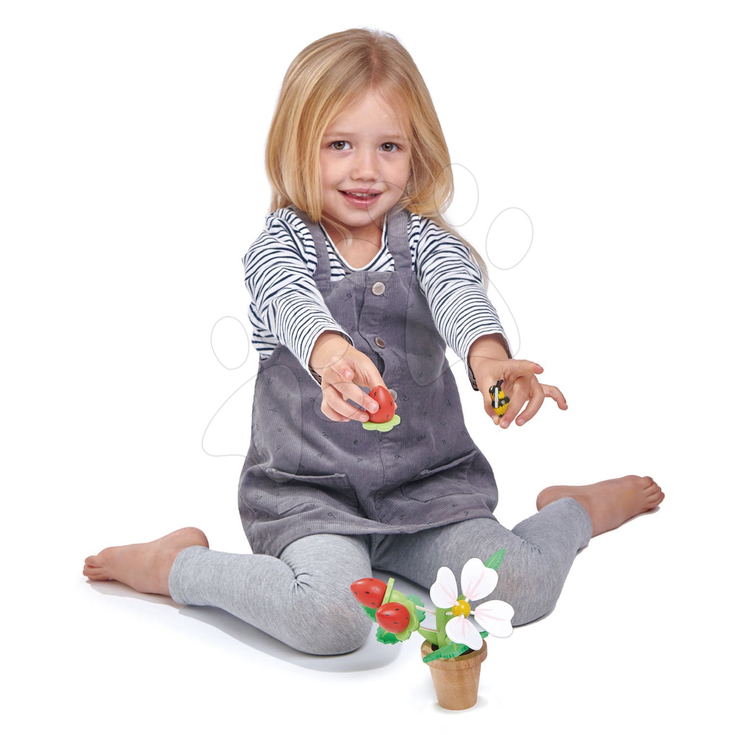 Dřevěné jahody v květináči Strawberry Flower Pot Tender Leaf Toys skládačka s magnetickým čmelákem