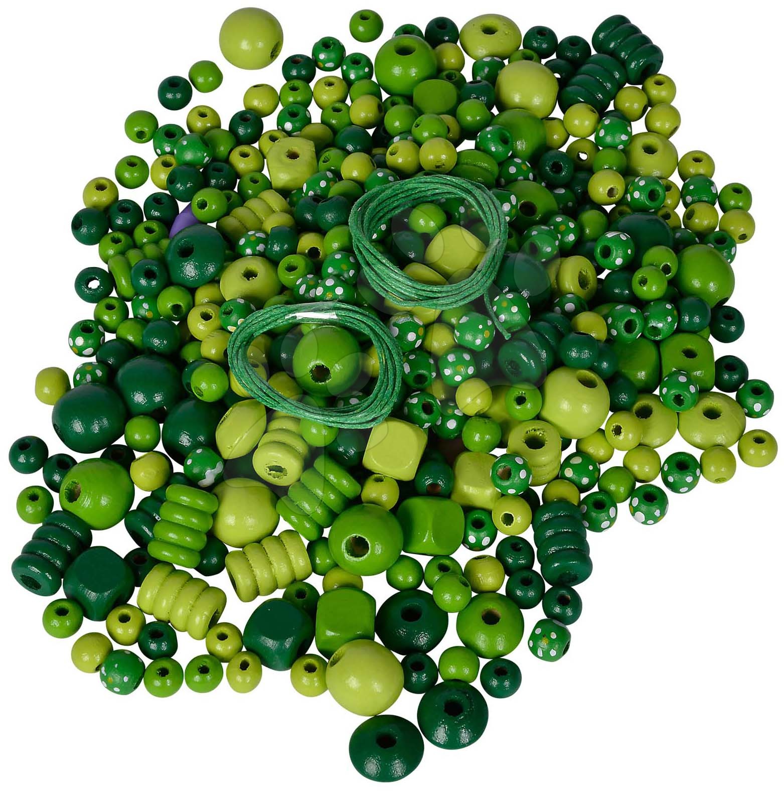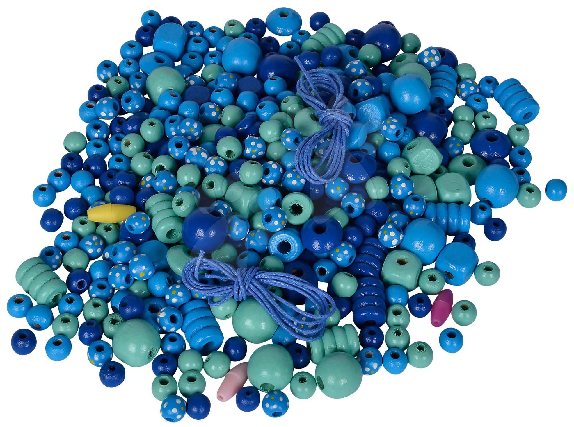 Dřevěné korálky v taštičce Wooden Bead-Set in Bag Eichhorn 388 dílků růžová zelená nebo modrá od 4 let