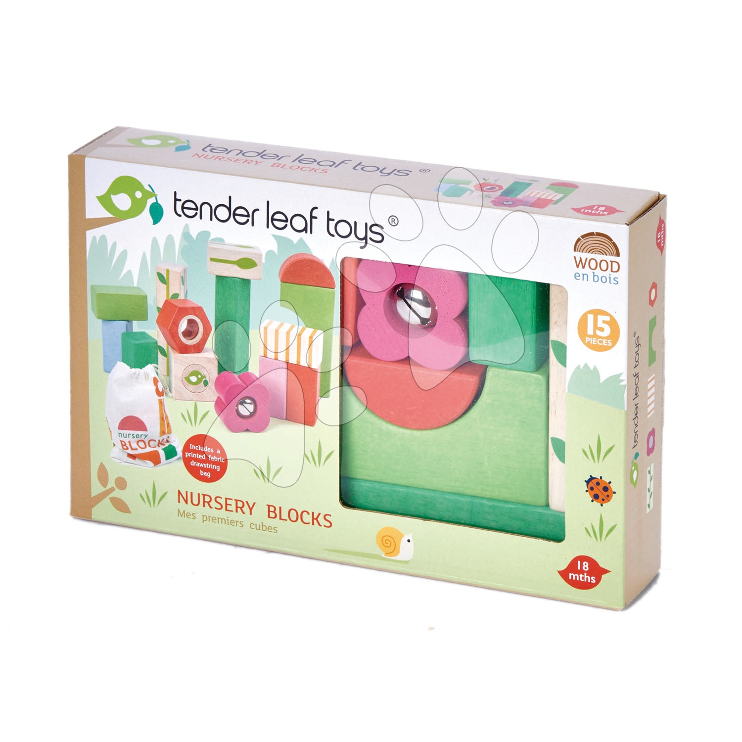 Dřevěné kostky lesní školka Nursery Blocks Tender Leaf Toys s malovanými obrázky a funkcemi 12 dílů od 18 měsíců