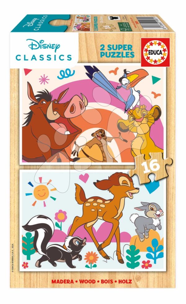 Dřevěné puzzle Animals Disney Educa 2 x 16 dílků