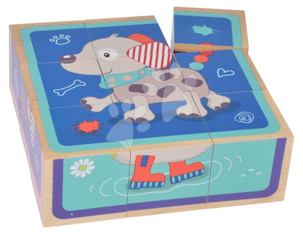 Dřevěné puzzle kostky Picture Cube Friends Eichhorn 9 dílů s obrázky zvířátek