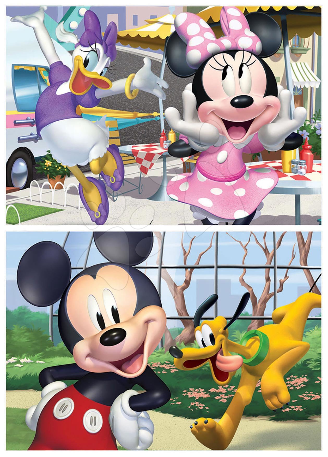 Kvalitní dřevěné puzzle pro děti od 4 let. Dřevěné puzzle Educa 2*25 dílů s obrázkem Mickeyho Mouse s přáteli potěší všechny kluky i holky.