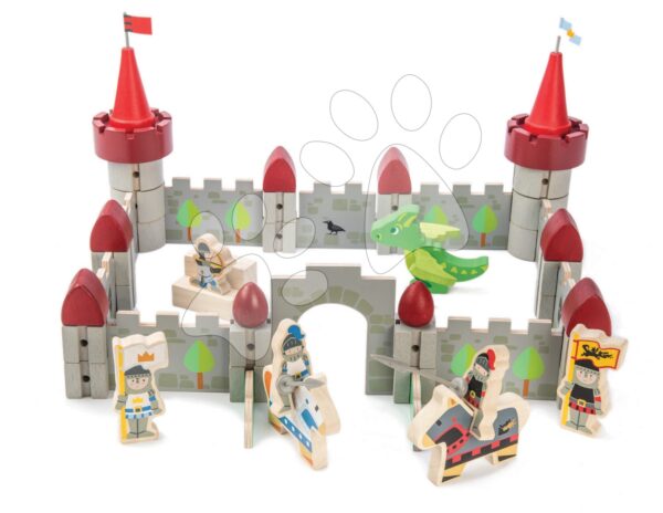Dřevěný hrad Dragon Castle Tender Leaf Toys 59dílná sada se drakem a vojáky