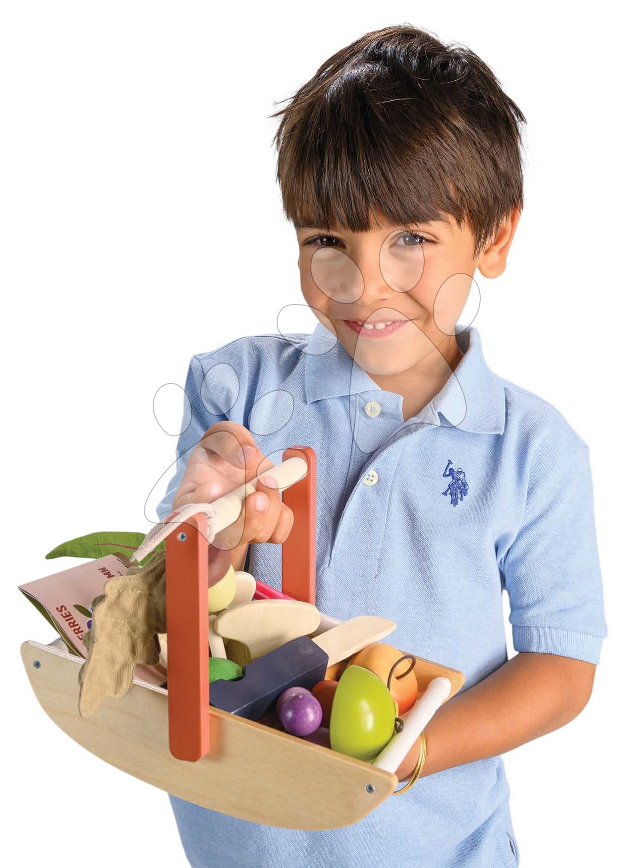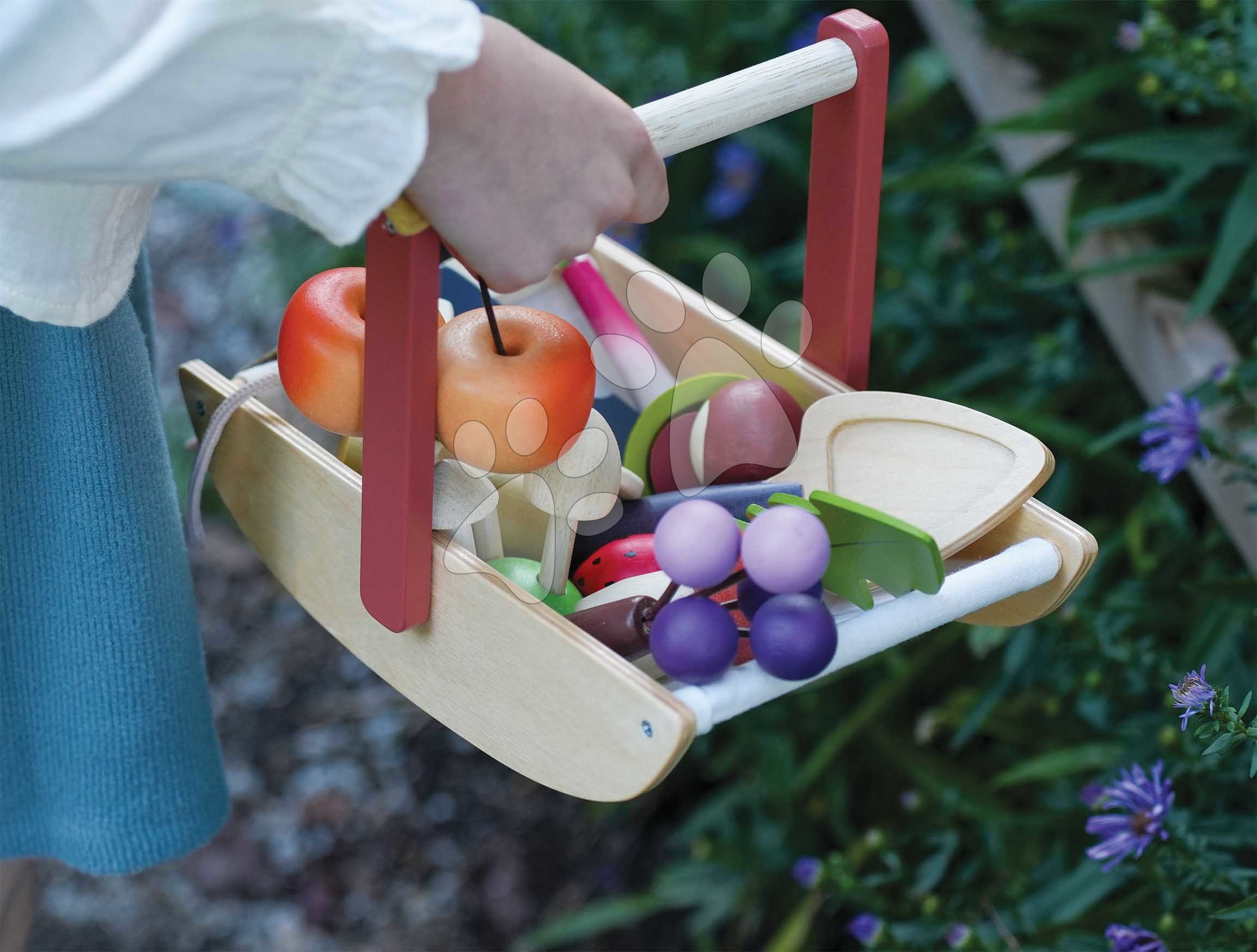 Kvalitní dřevěné hračky od britské značky Tender Leaf Toys. Dřevěný košík na sbírání lesních plodů s hříbky, jablíčky a jahodami potěší děti od 3 let.