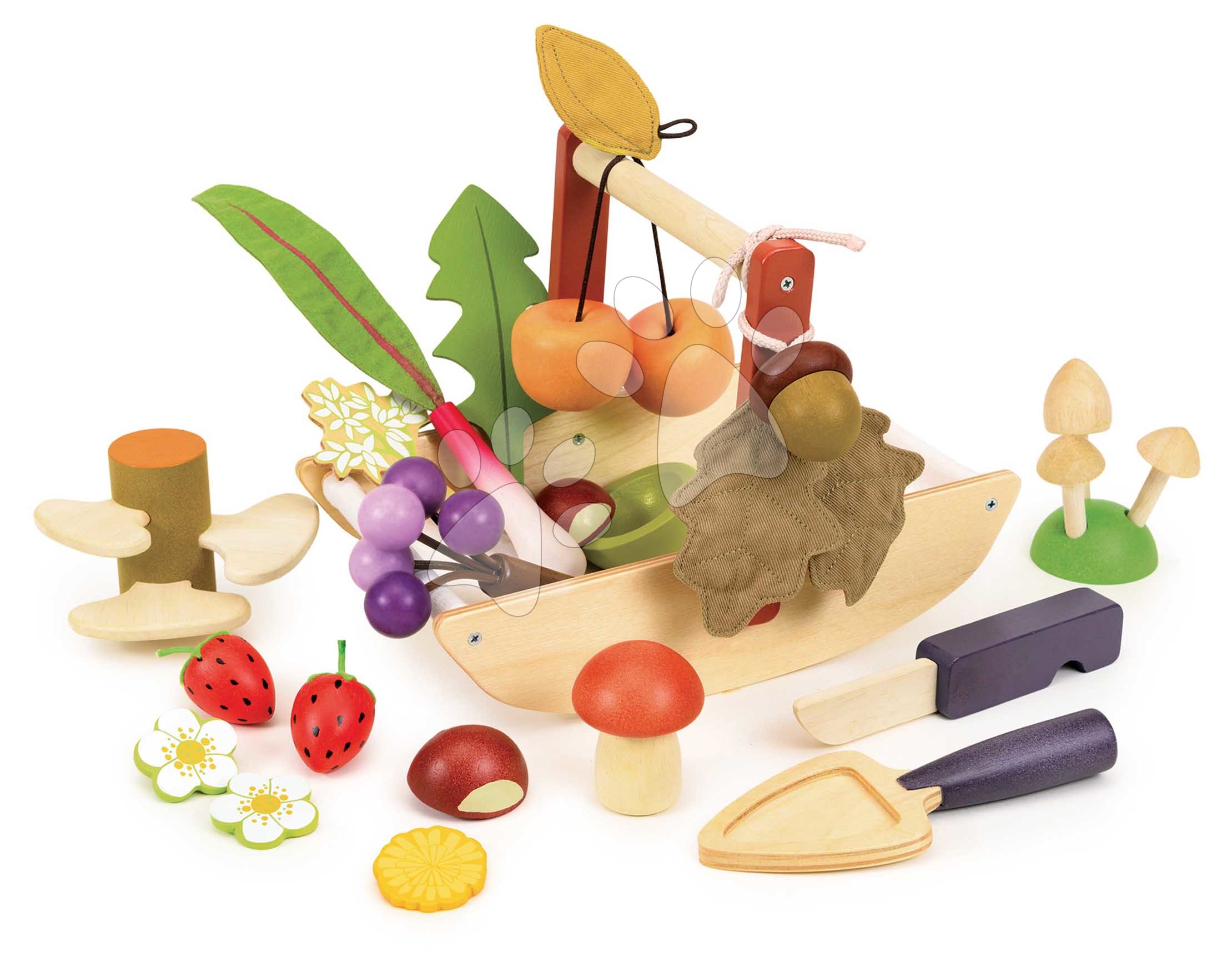 Dřevěný košík na sbírání lesních plodů Wild Wood Forgaing Trug Tender Leaf Toys s houbami jablíčky jahodami