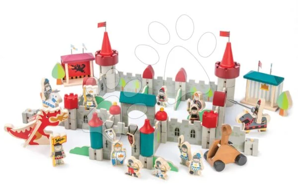 Dřevěný královský hrad Royal Castle Tender Leaf Toys 100dílná sada s rytíři, koňmi a drakem
