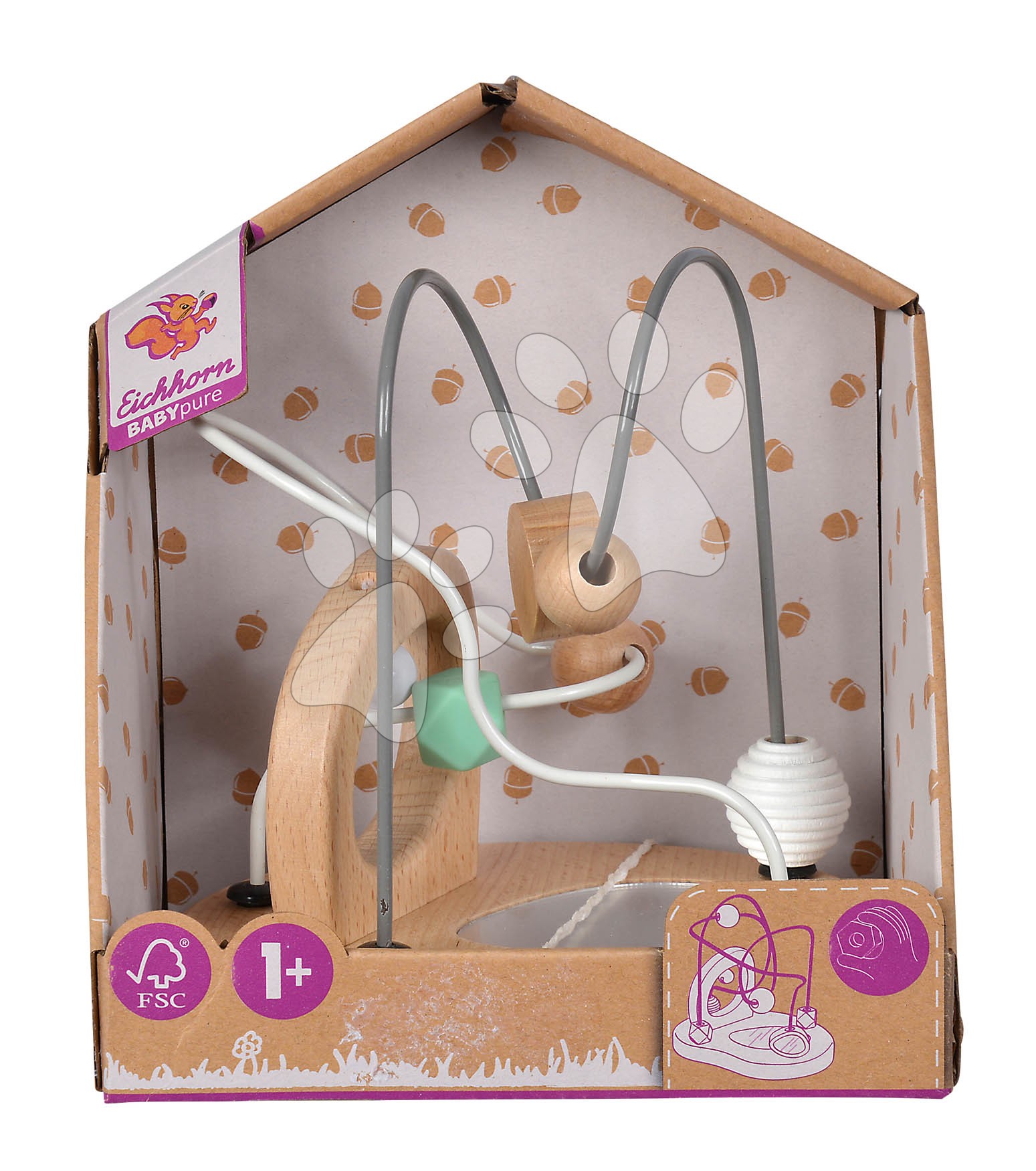 Dřevěný labyrint se zvonkem a zrcadlem Baby Pure Bead Maze Eichhorn hra se 2 drahami od 12 měsíců