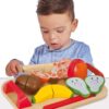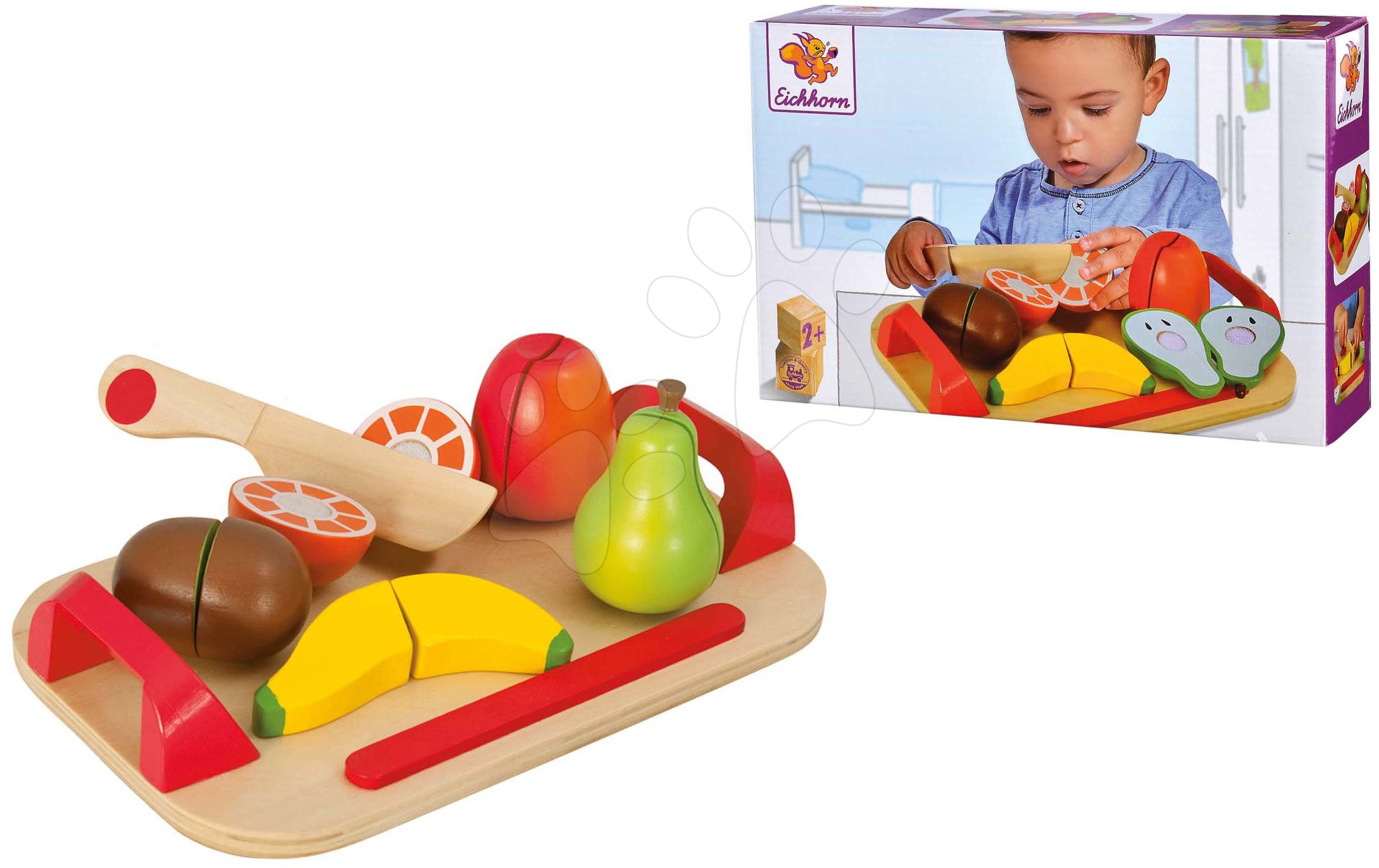 Hra na kuchaře vyžaduje mnoho kuchyňských doplňků. Dřevěný podnos s ovocem Chopping Board Fruits Eichhorn zabaví děti od 2 let.